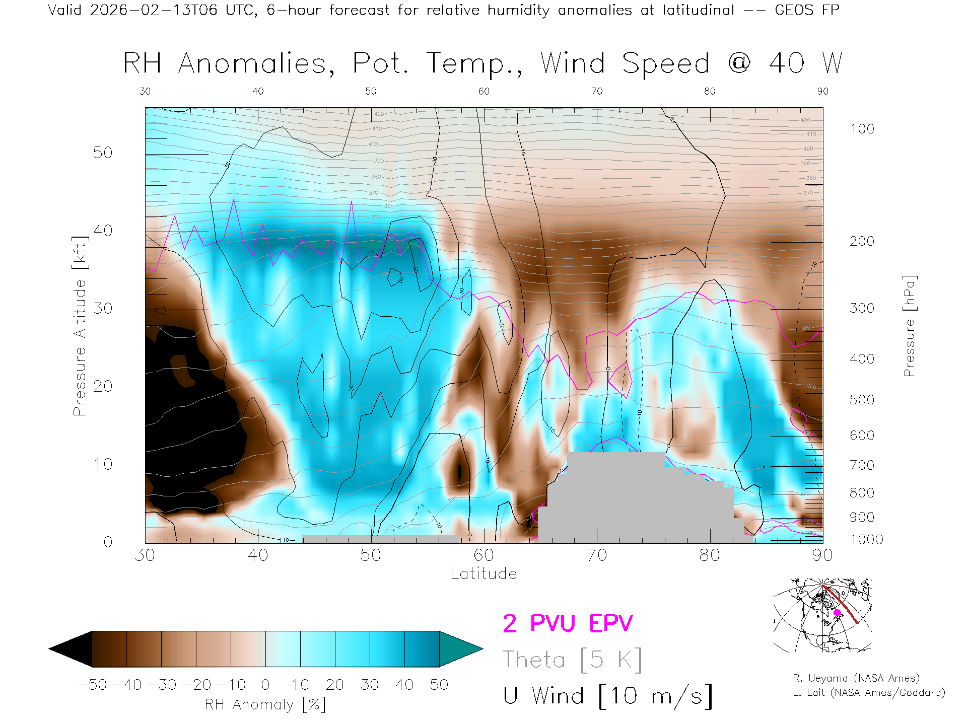 GEOS Forecast Rel. Hum. X-Section (40 W)