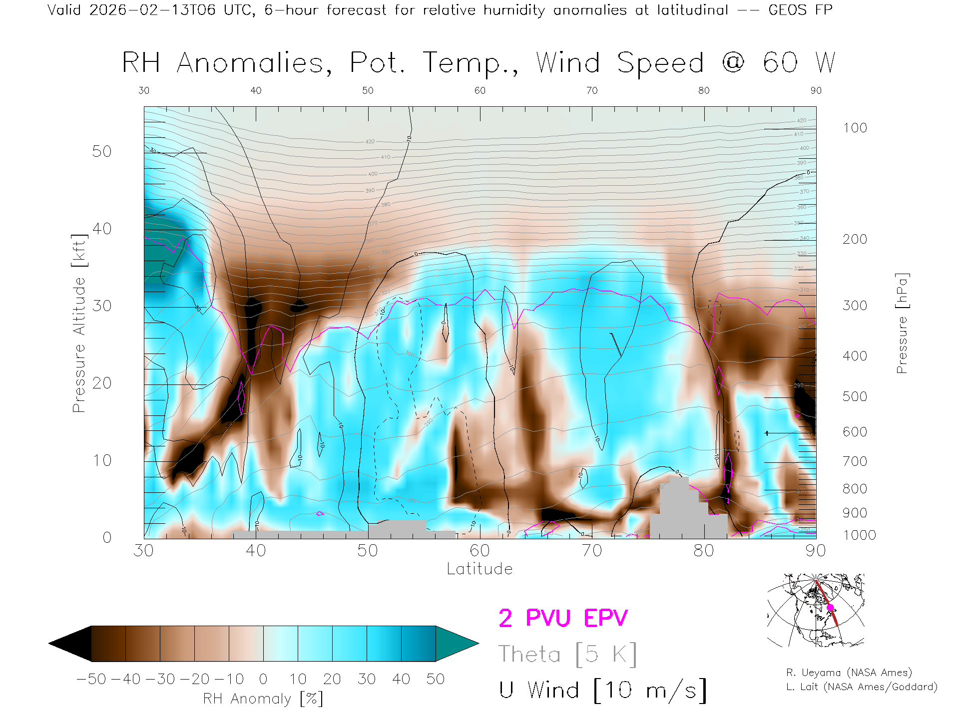 GEOS Forecast Rel. Hum. X-Section (60 W)