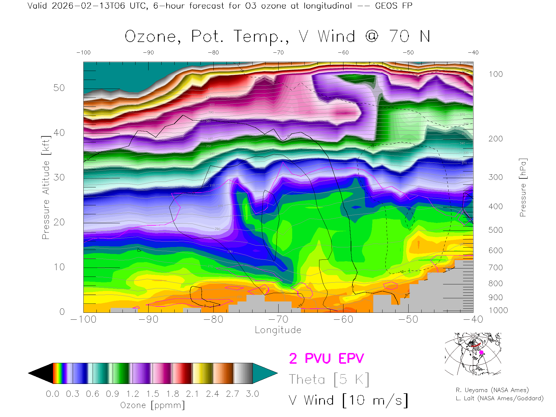 GEOS Forecast Ozone X-Section (70 N)