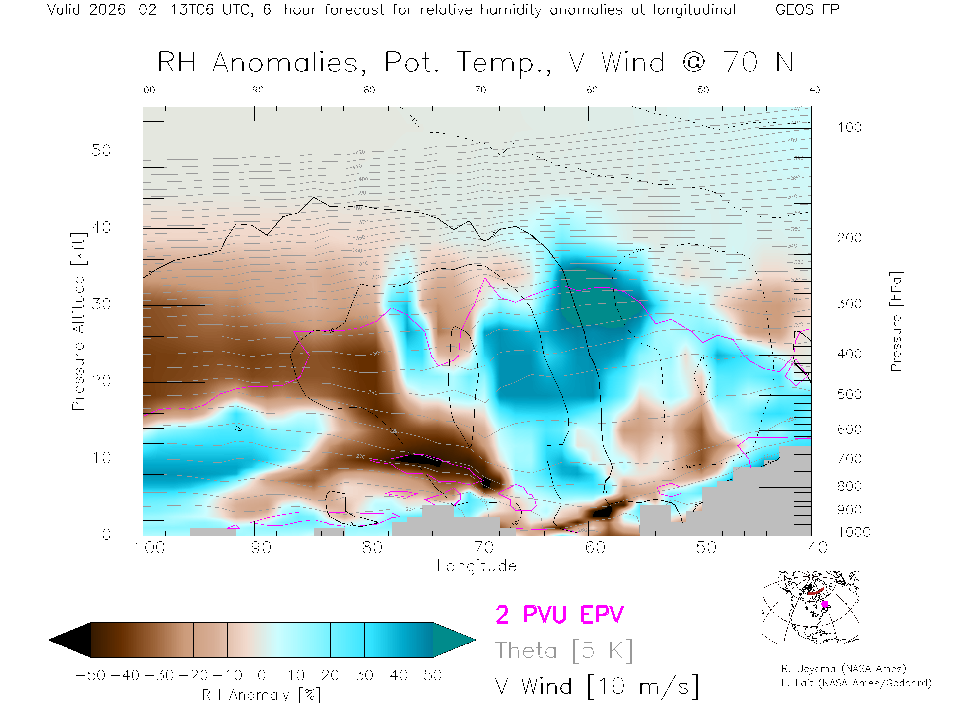 GEOS Forecast Rel. Hum. X-Section (70 N)