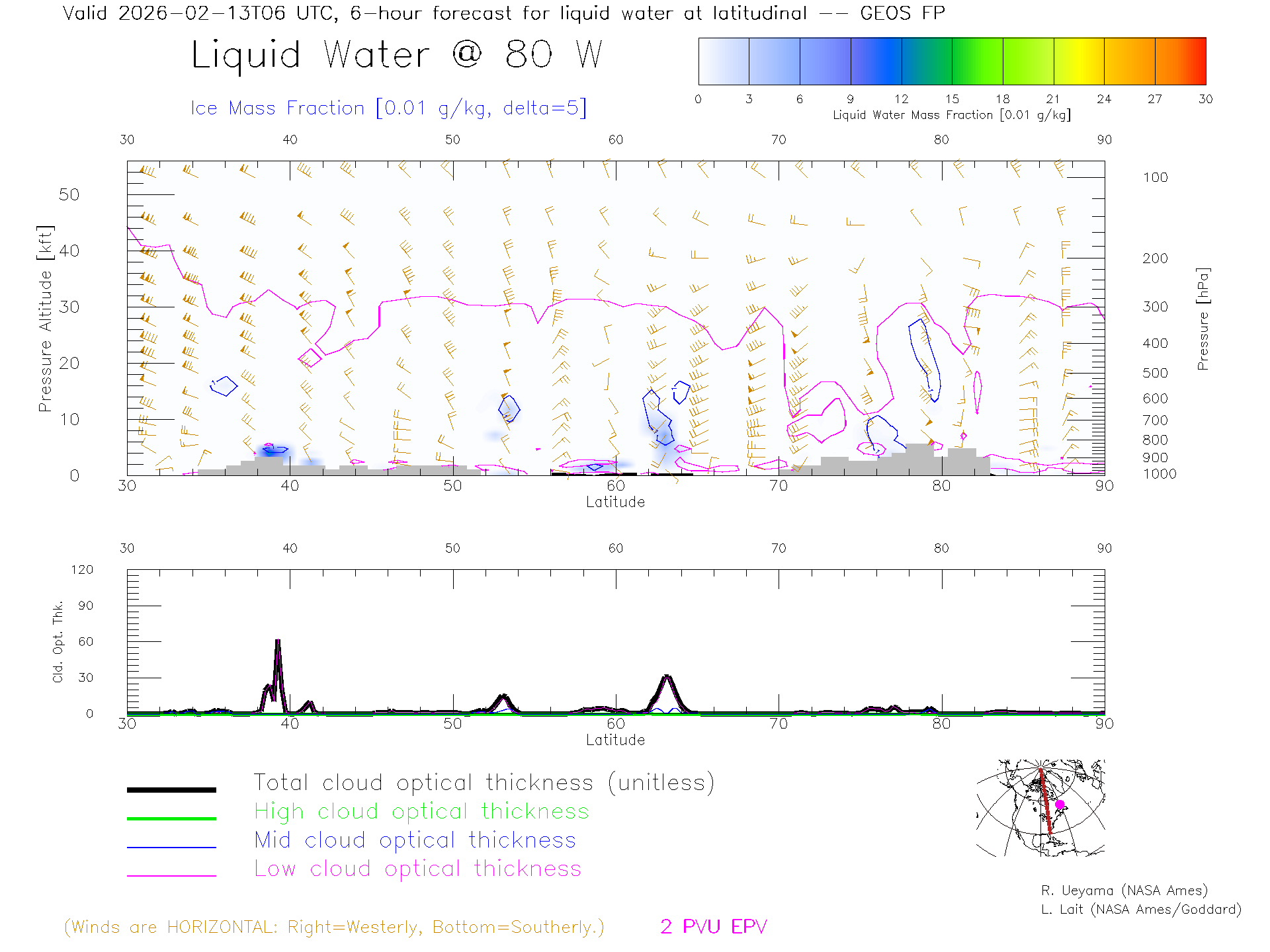 GEOS Forecast Cloud Water Content X-Section (80 W)