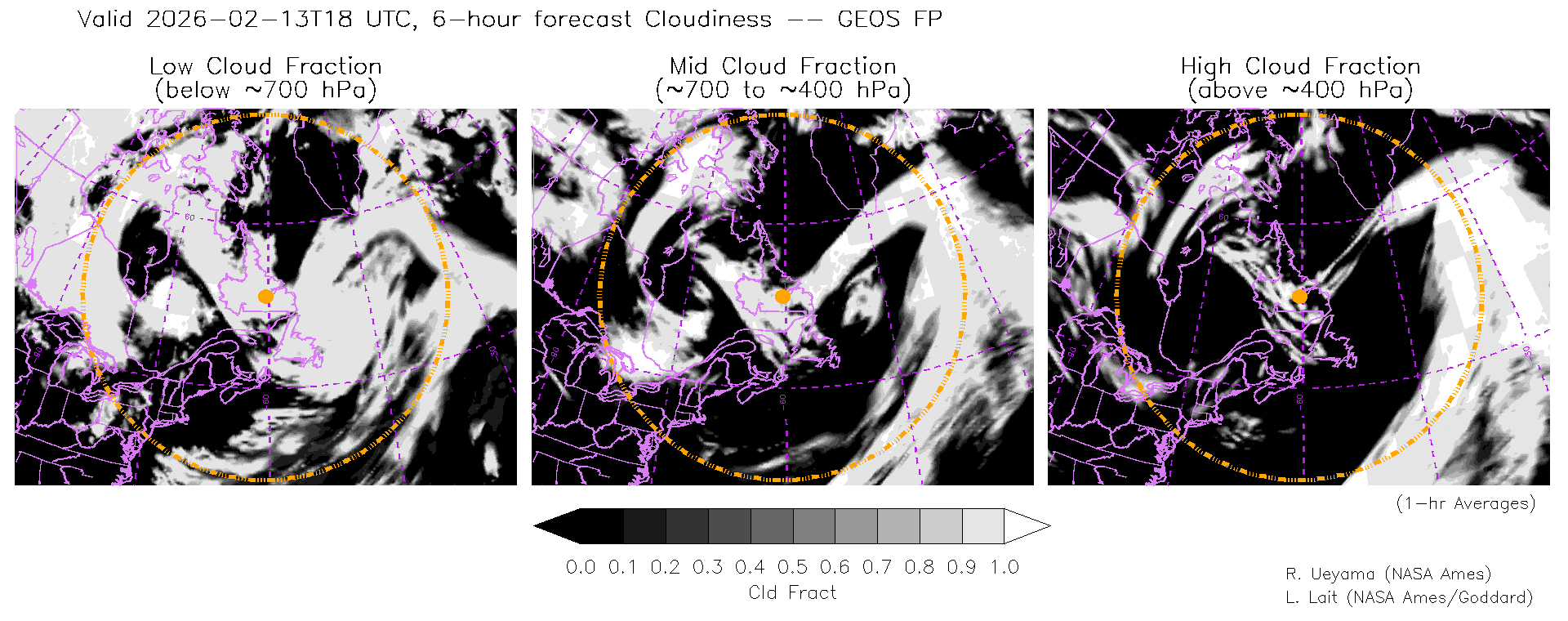 GEOS Forecast Cloud Fraction (High, Mid, Low)