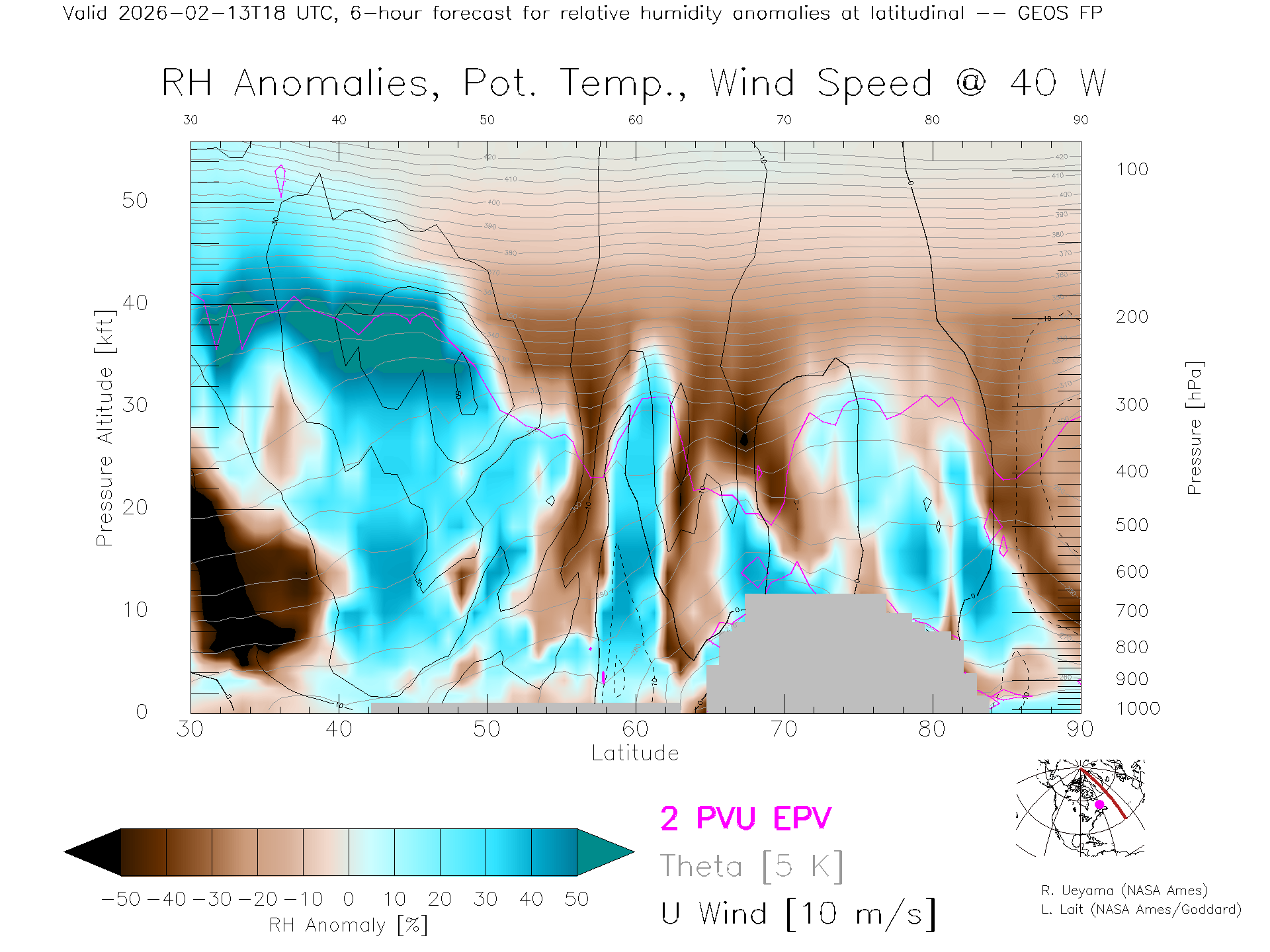 GEOS Forecast Rel. Hum. X-Section (40 W)