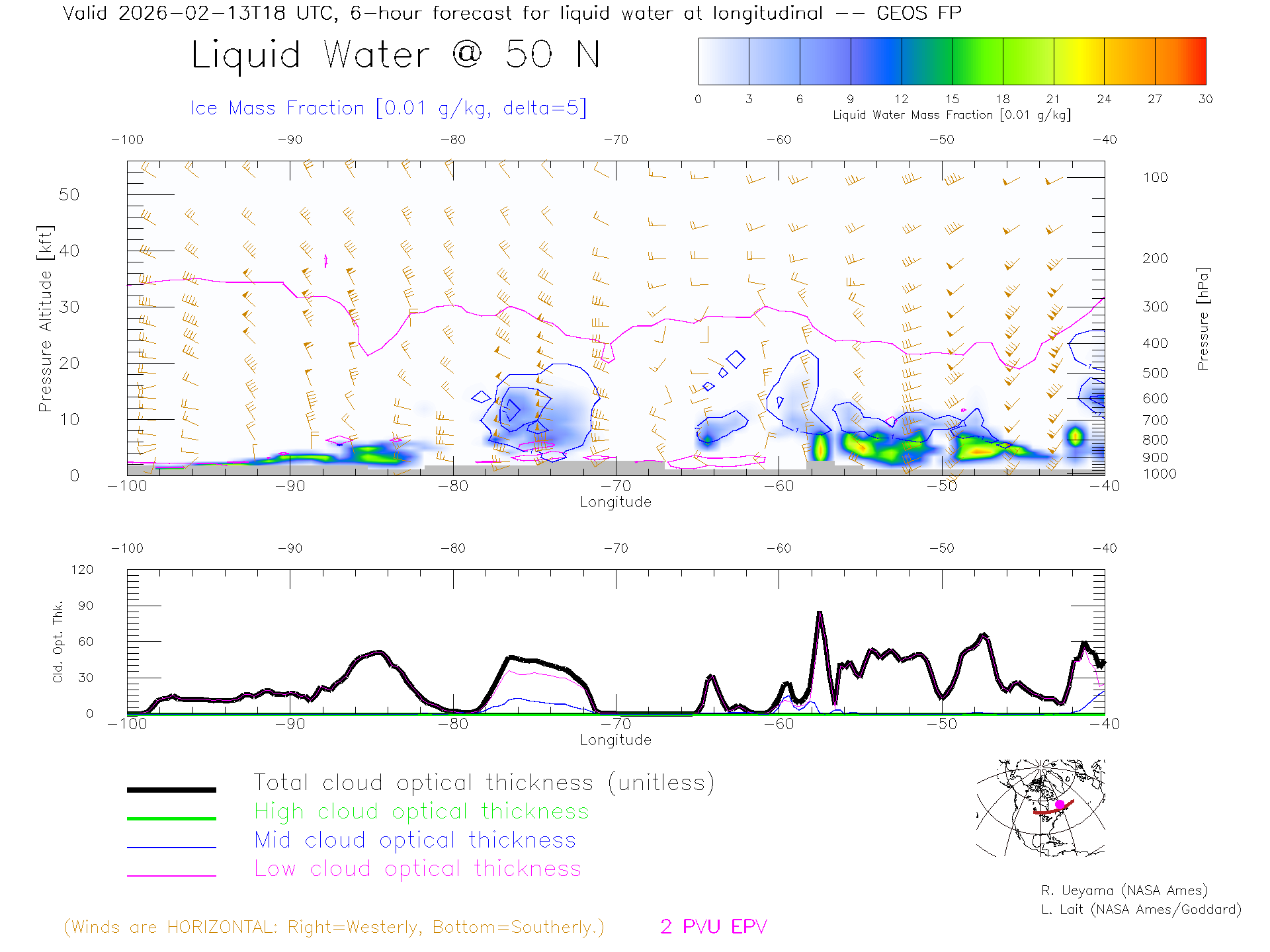 GEOS Forecast Cloud Water Content X-Section (50 N)