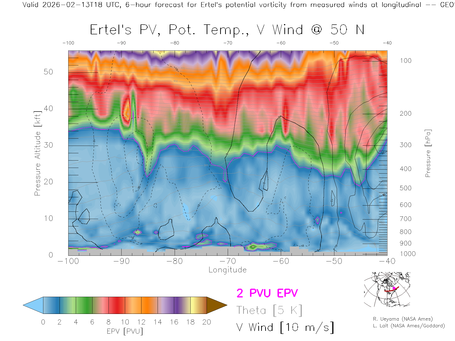 GEOS Forecast PV X-Section (50 N)