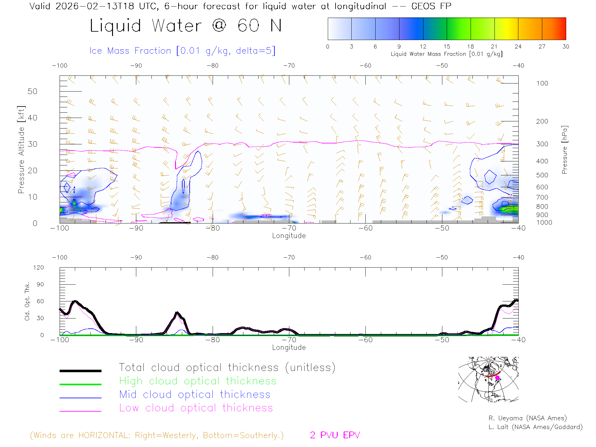 GEOS Forecast Cloud Water Content X-Section (60 N)