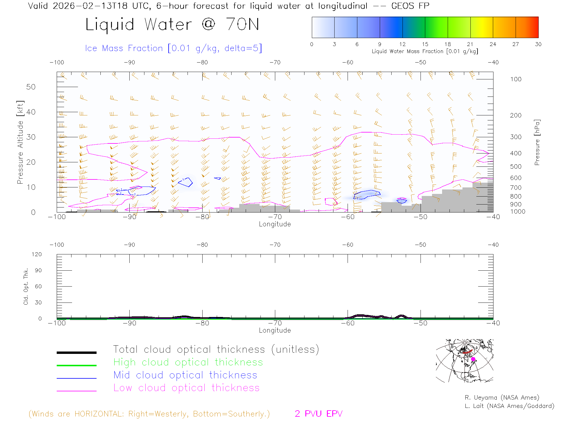 GEOS Forecast Cloud Water Content X-Section (70 N)