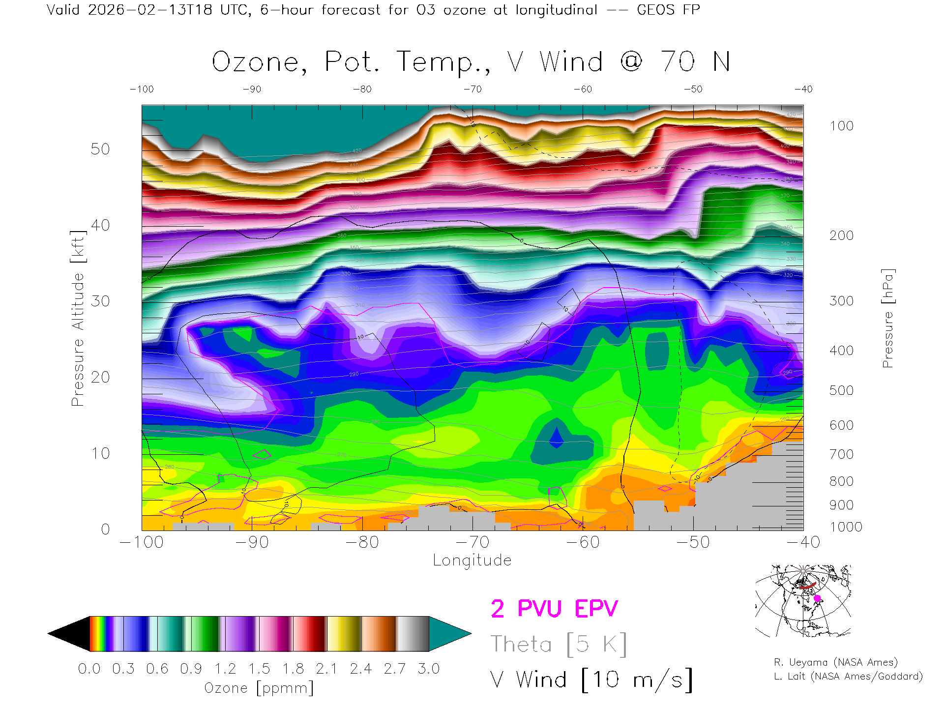 GEOS Forecast Ozone X-Section (70 N)