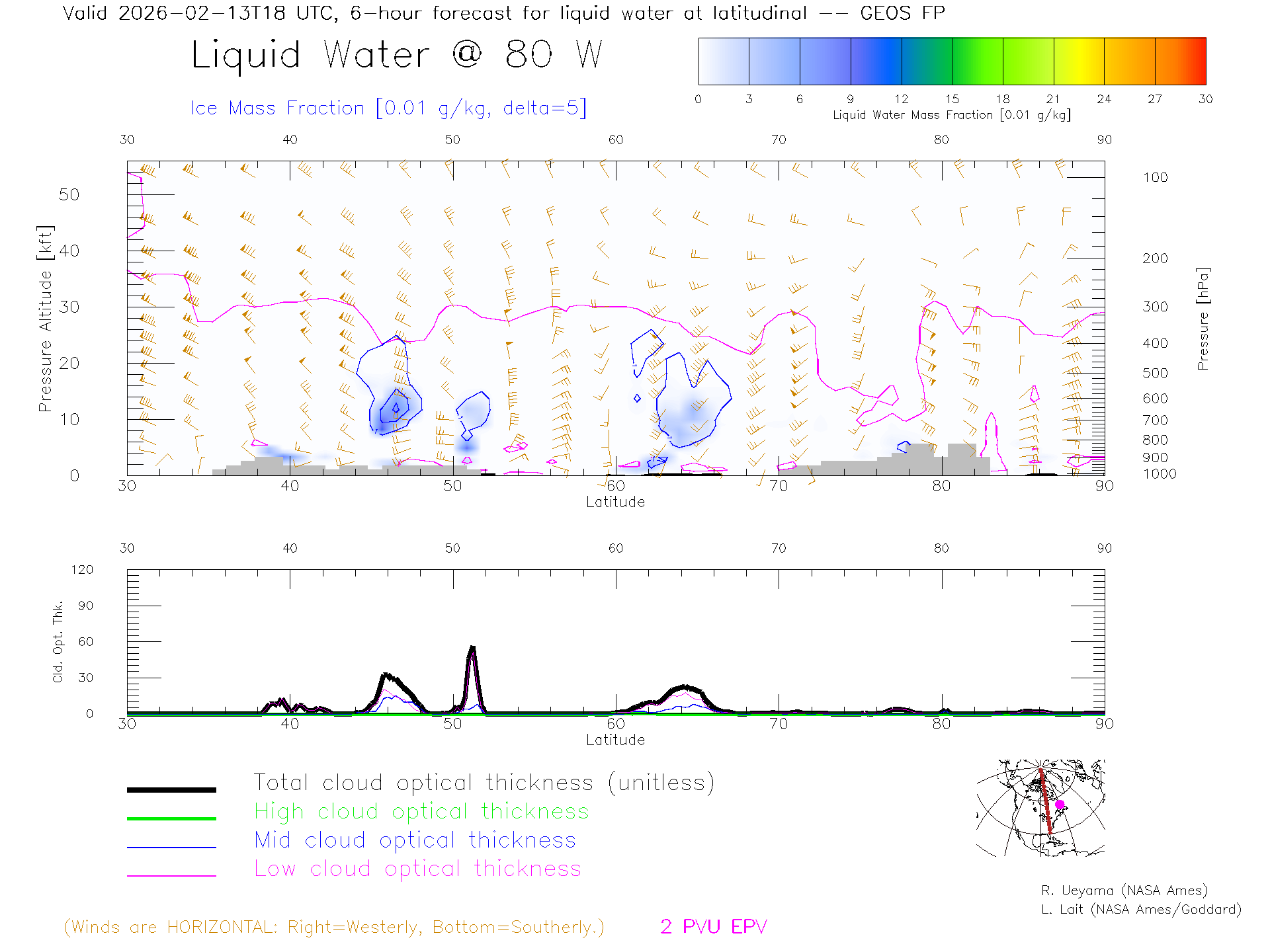 GEOS Forecast Cloud Water Content X-Section (80 W)