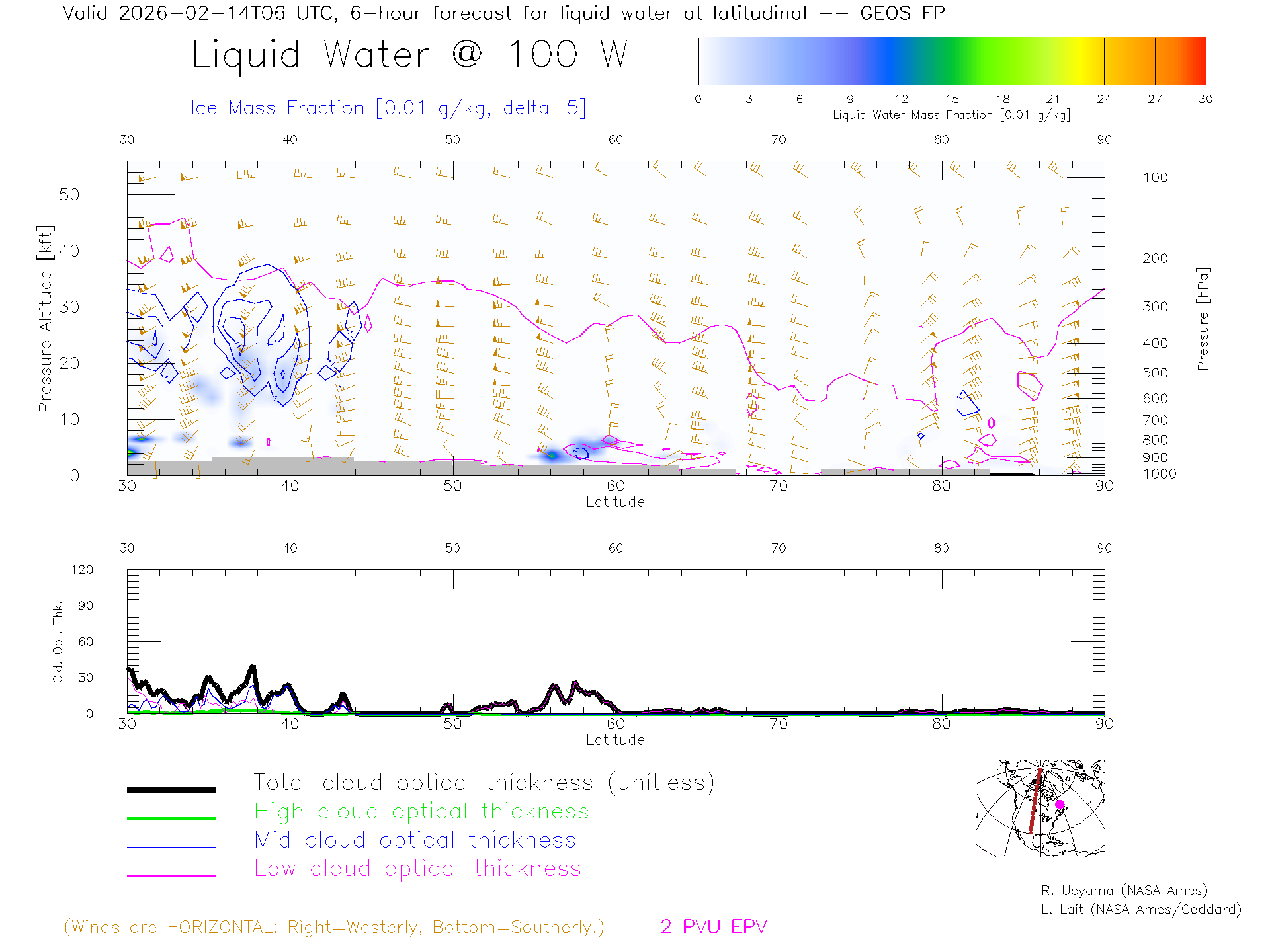 GEOS Forecast Cloud Water Content X-Section (100 W)