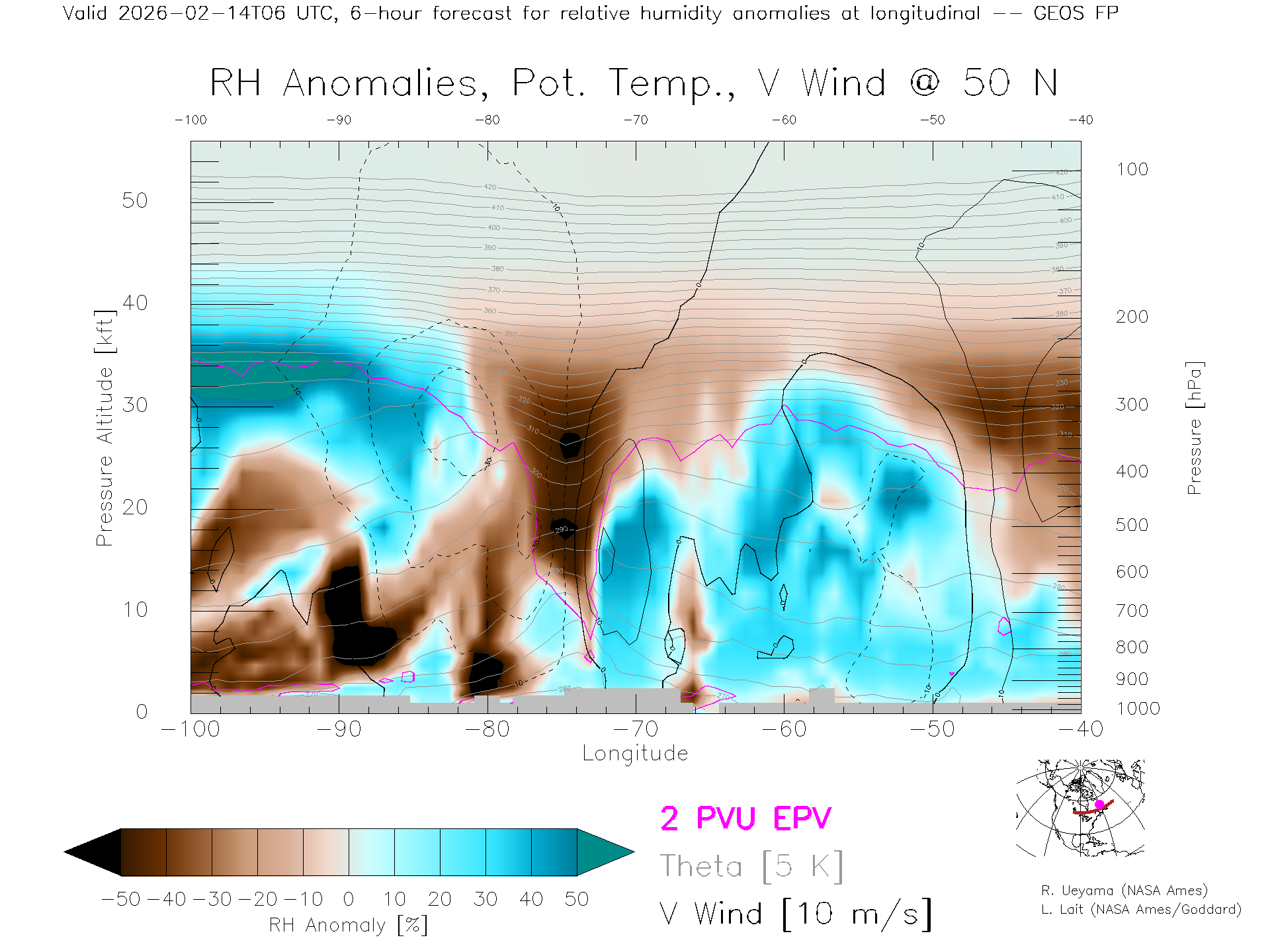 GEOS Forecast Rel. Hum. X-Section (50 N)
