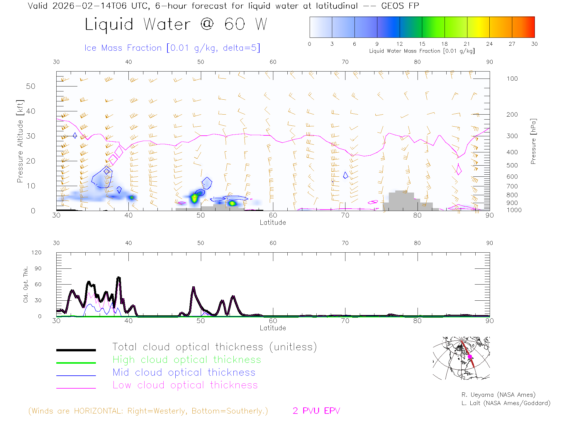GEOS Forecast Cloud Water Content X-Section (60 W)