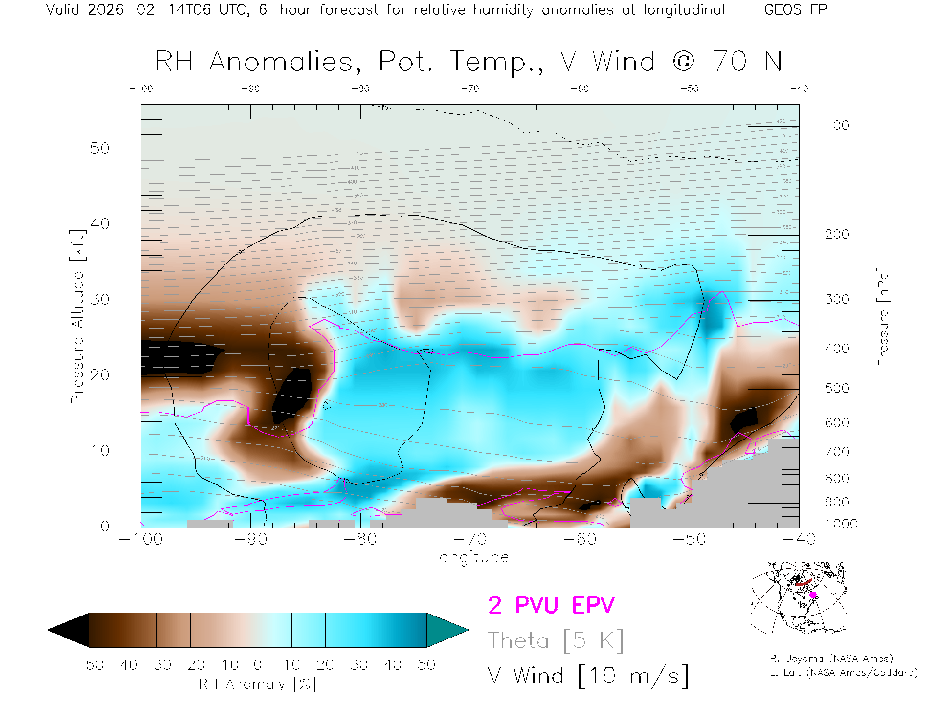 GEOS Forecast Rel. Hum. X-Section (70 N)