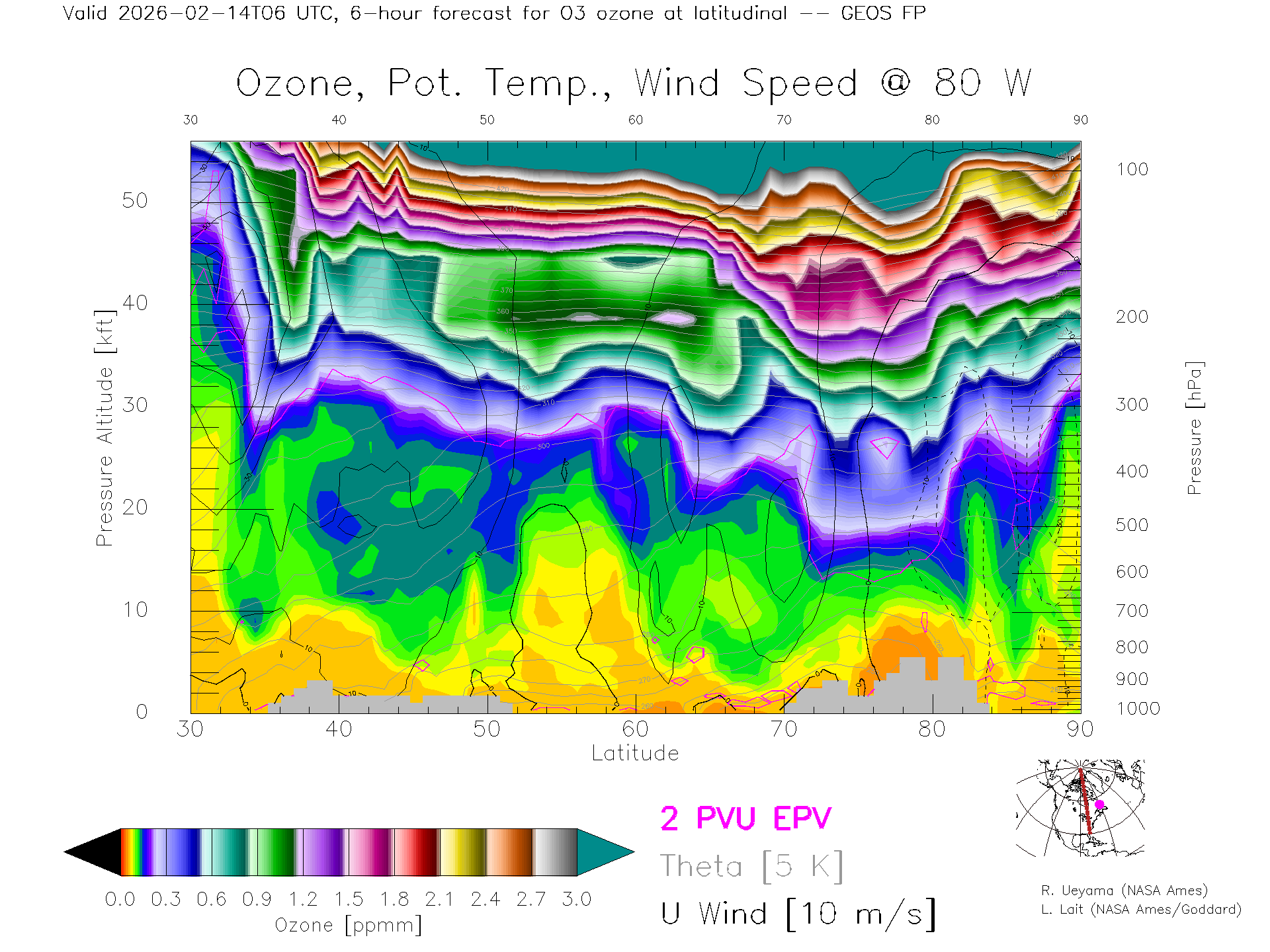GEOS Forecast Ozone X-Section (80 W)