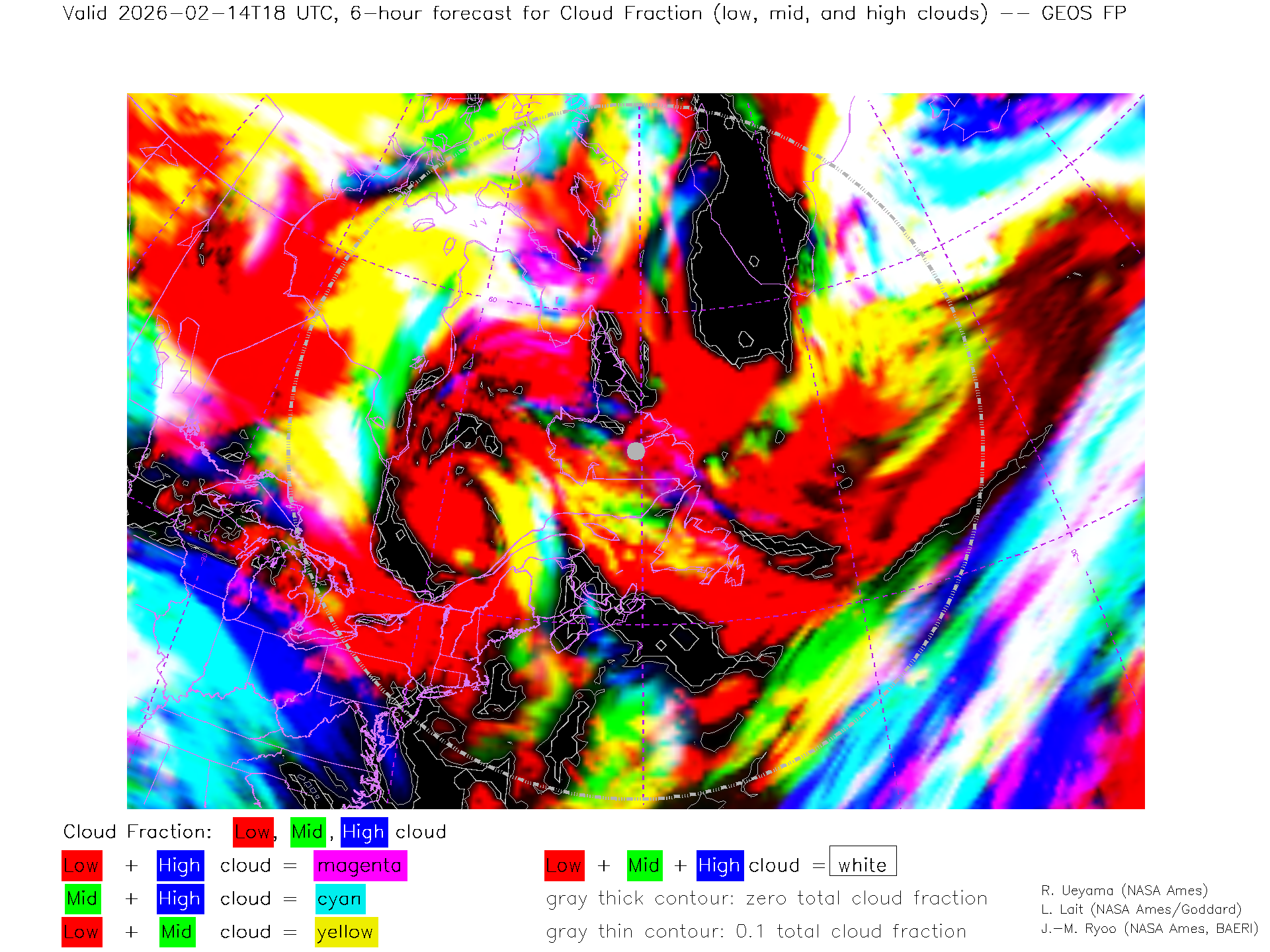 GEOS Forecast Low-, Mid- and High-level Cloud Fraction
