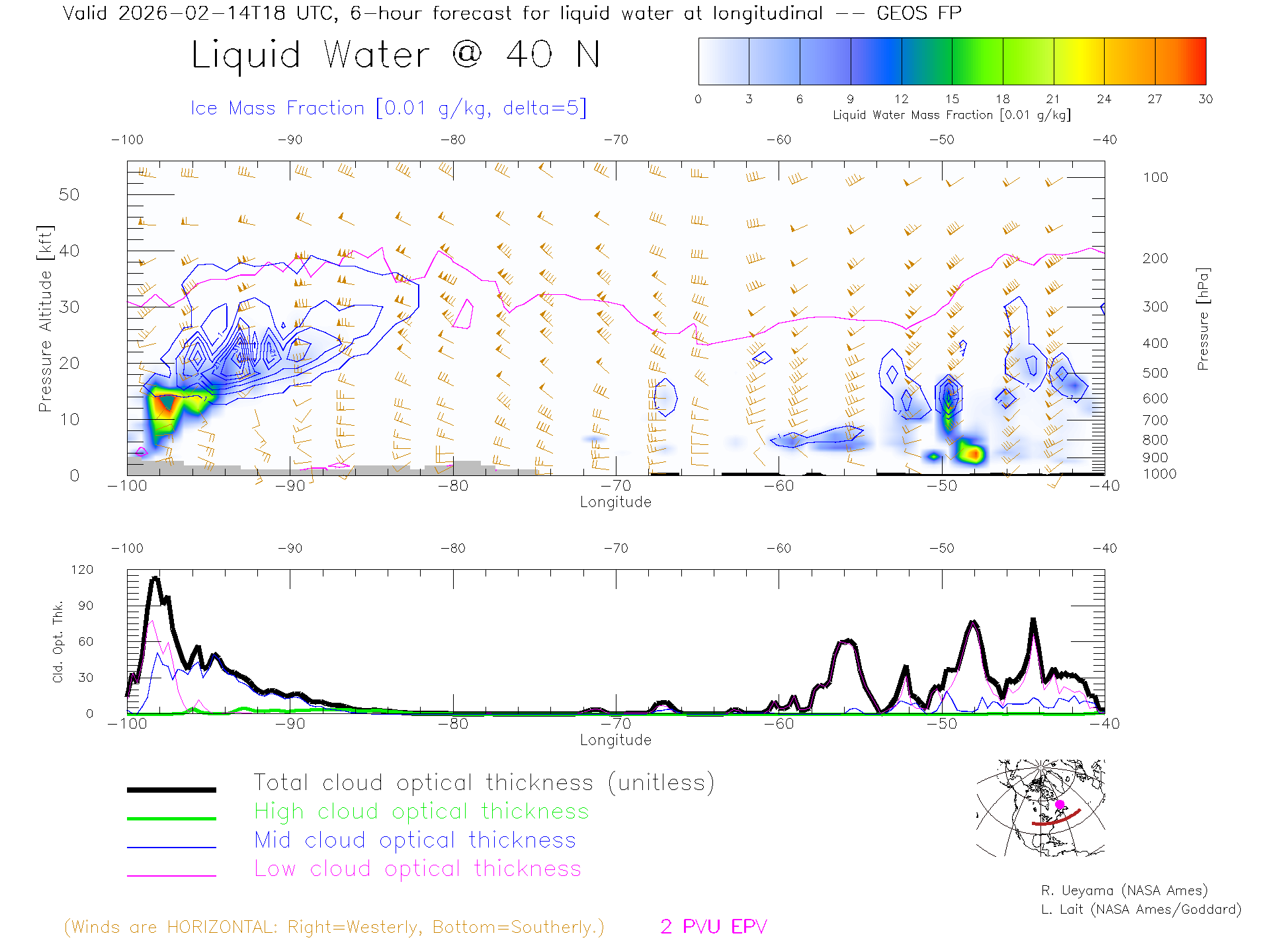 GEOS Forecast Cloud Water Content X-Section (40 N)