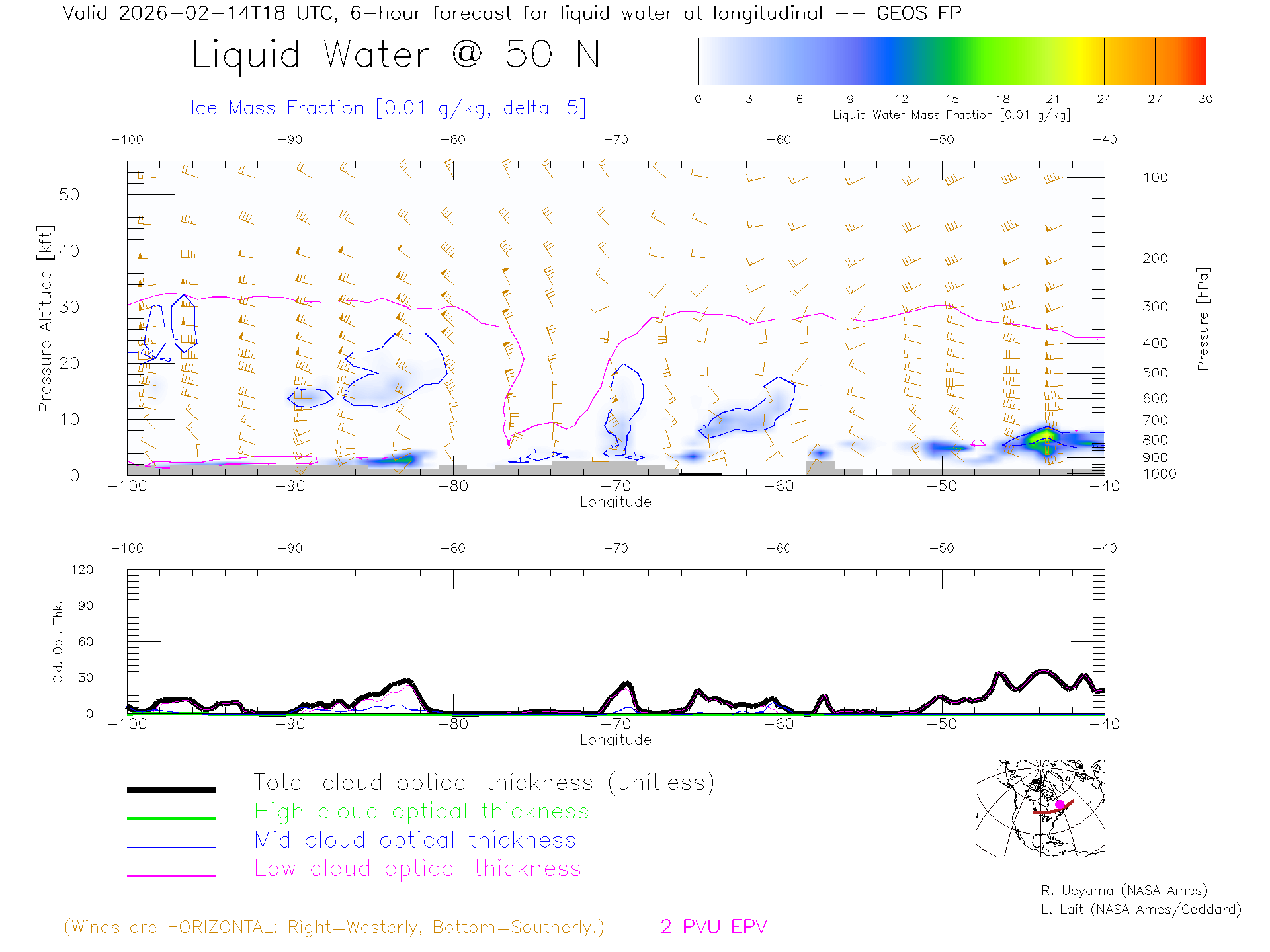 GEOS Forecast Cloud Water Content X-Section (50 N)