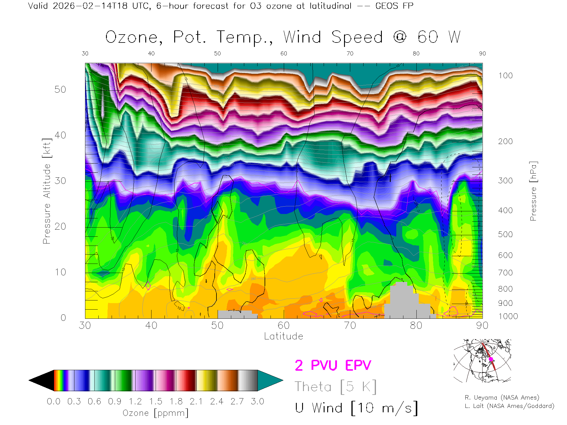 GEOS Forecast Ozone X-Section (60 W)