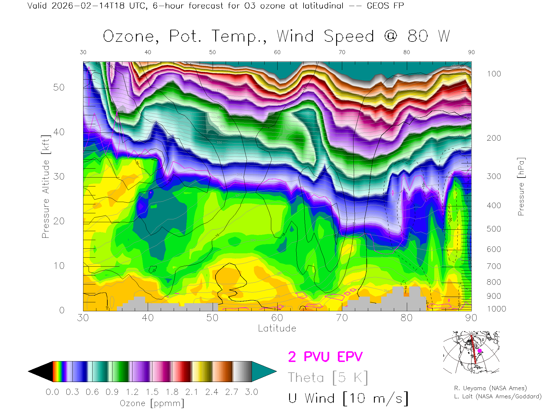 GEOS Forecast Ozone X-Section (80 W)