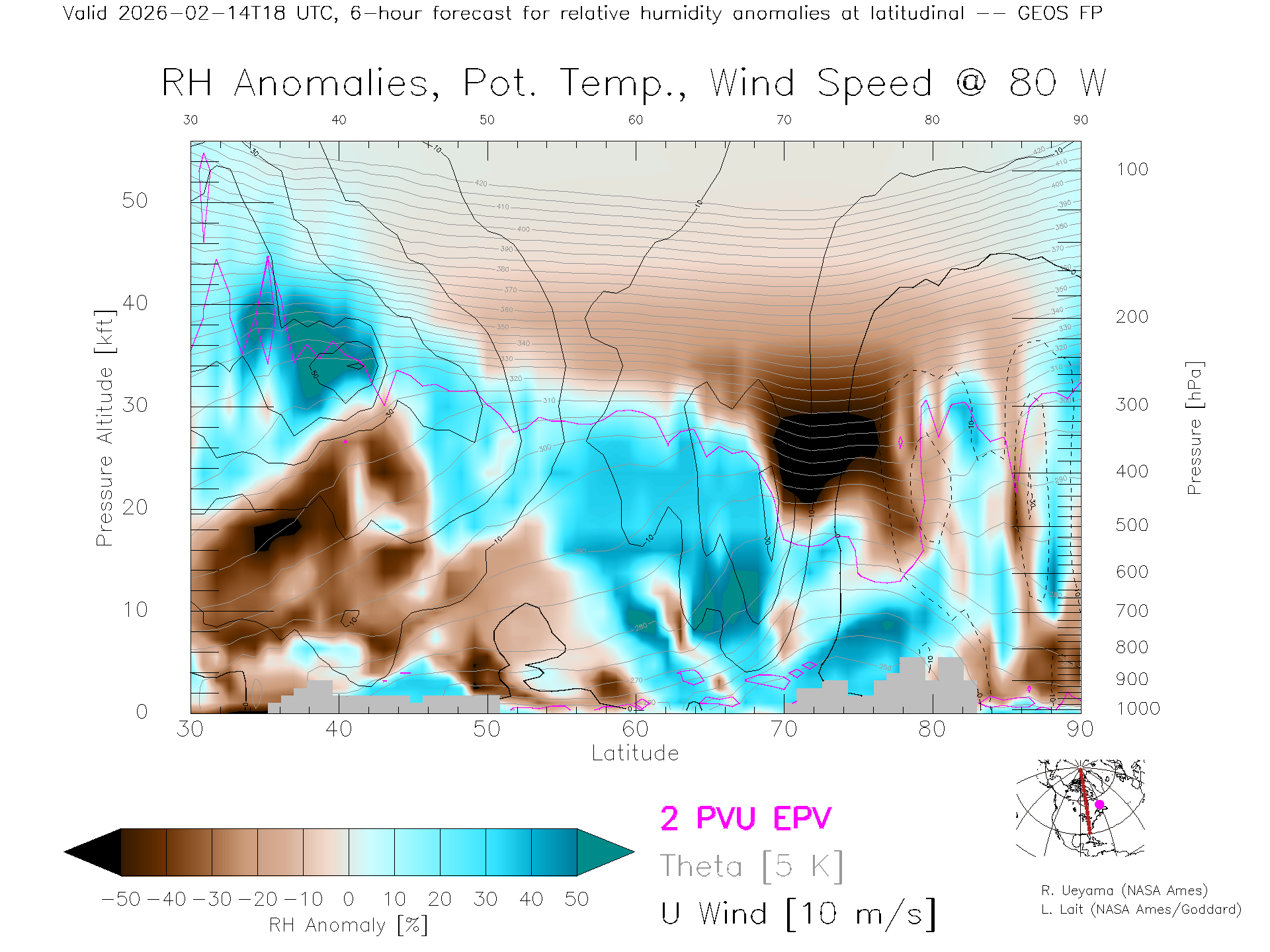 GEOS Forecast Rel. Hum. X-Section (80 W)