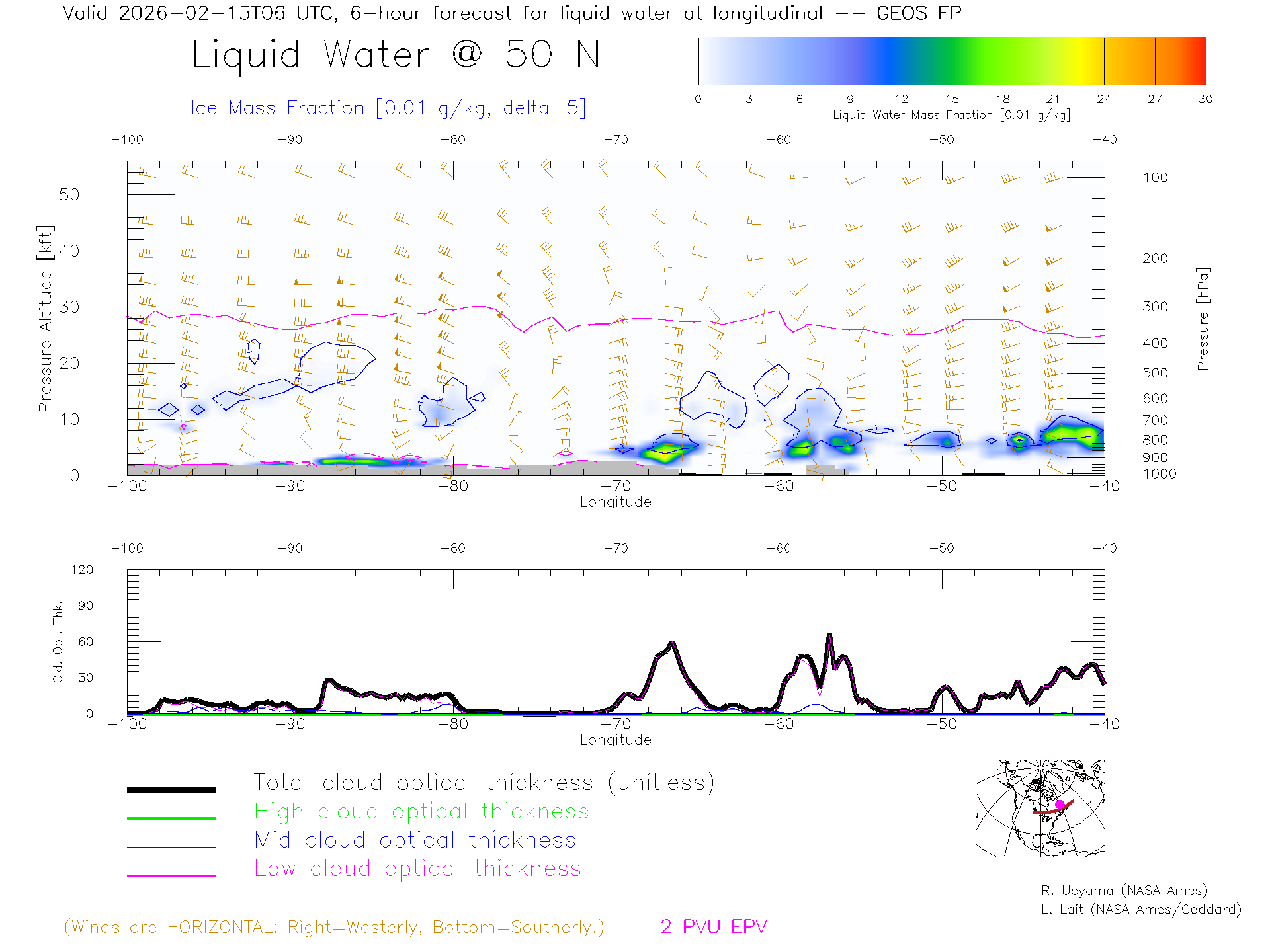 GEOS Forecast Cloud Water Content X-Section (50 N)