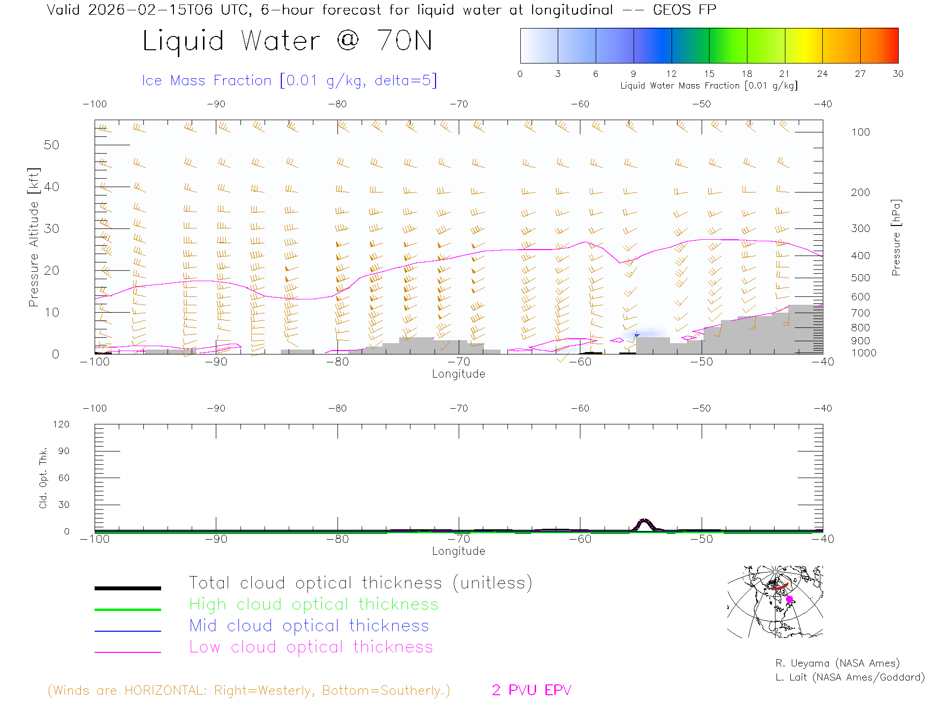 GEOS Forecast Cloud Water Content X-Section (70 N)
