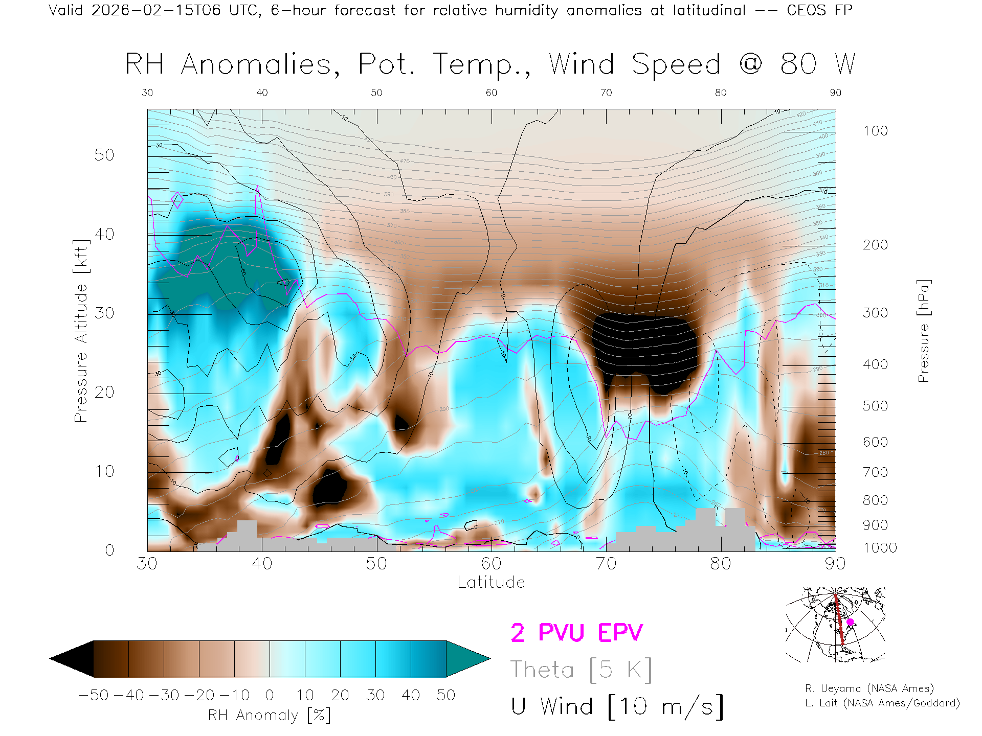 GEOS Forecast Rel. Hum. X-Section (80 W)