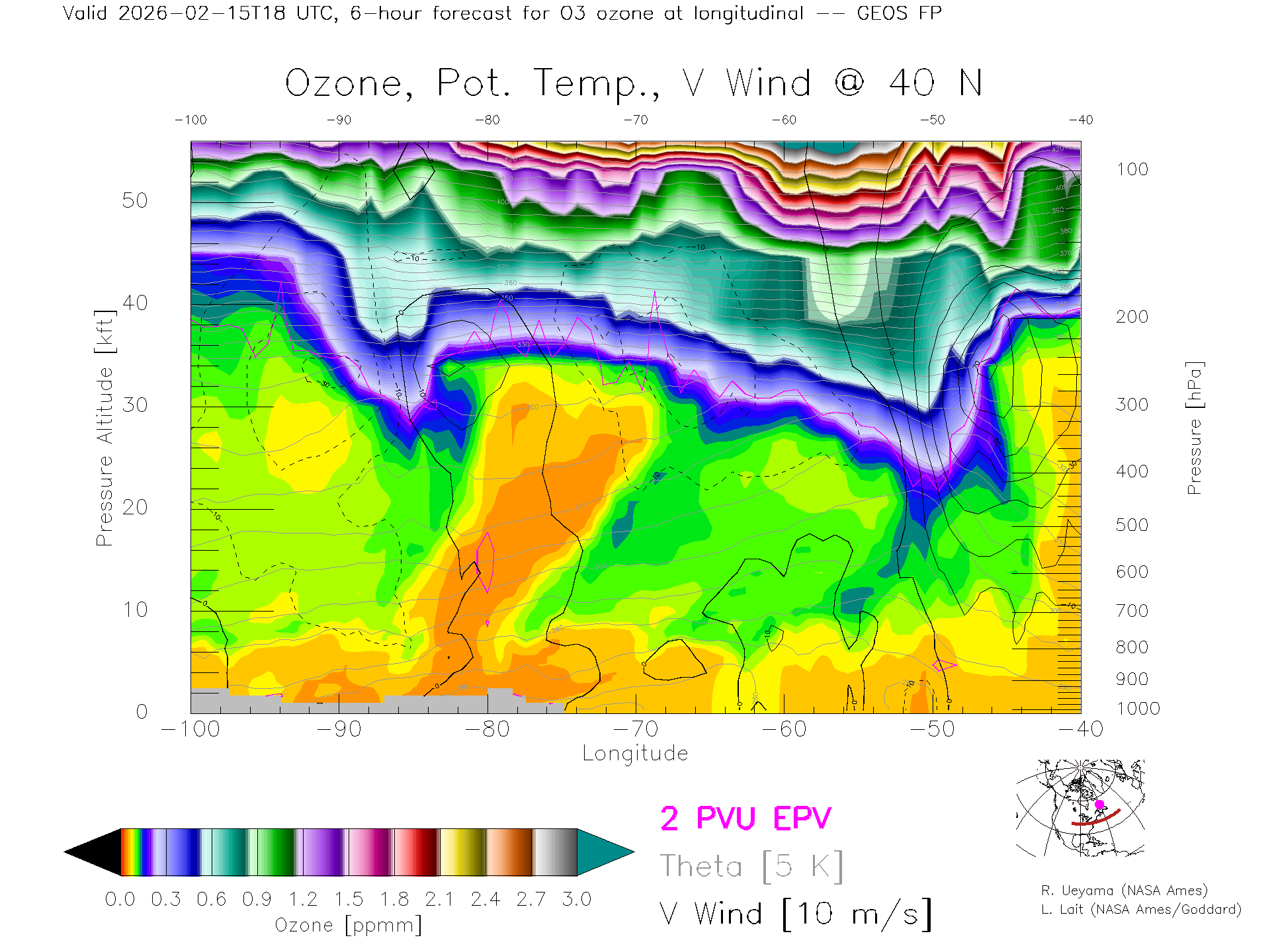 GEOS Forecast Ozone X-Section (40 N)