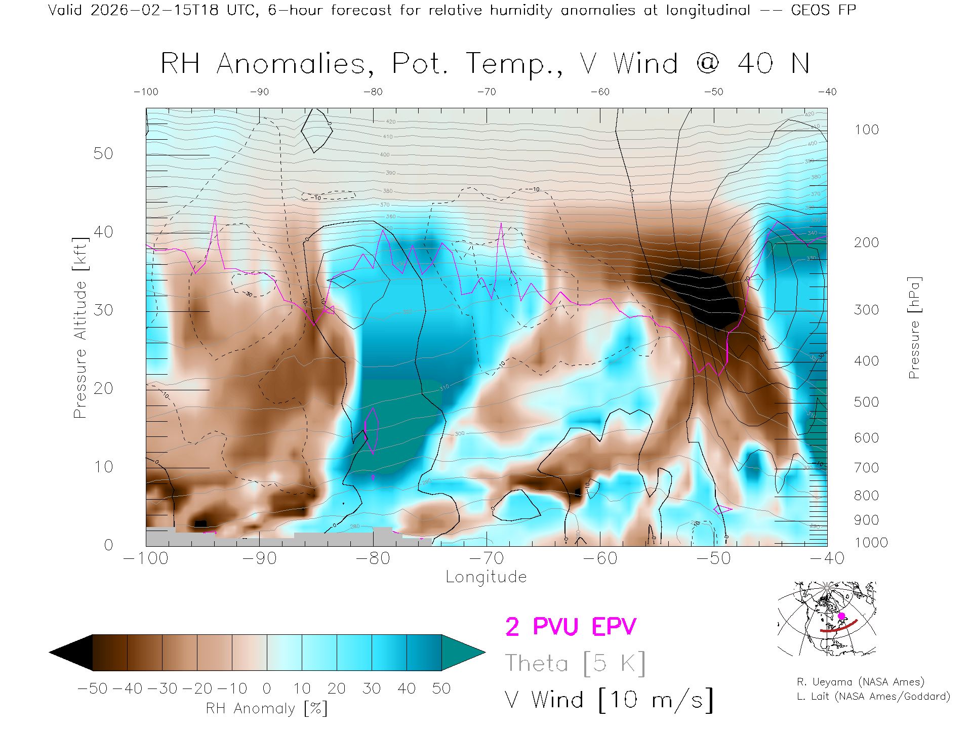 GEOS Forecast Rel. Hum. X-Section (40 N)
