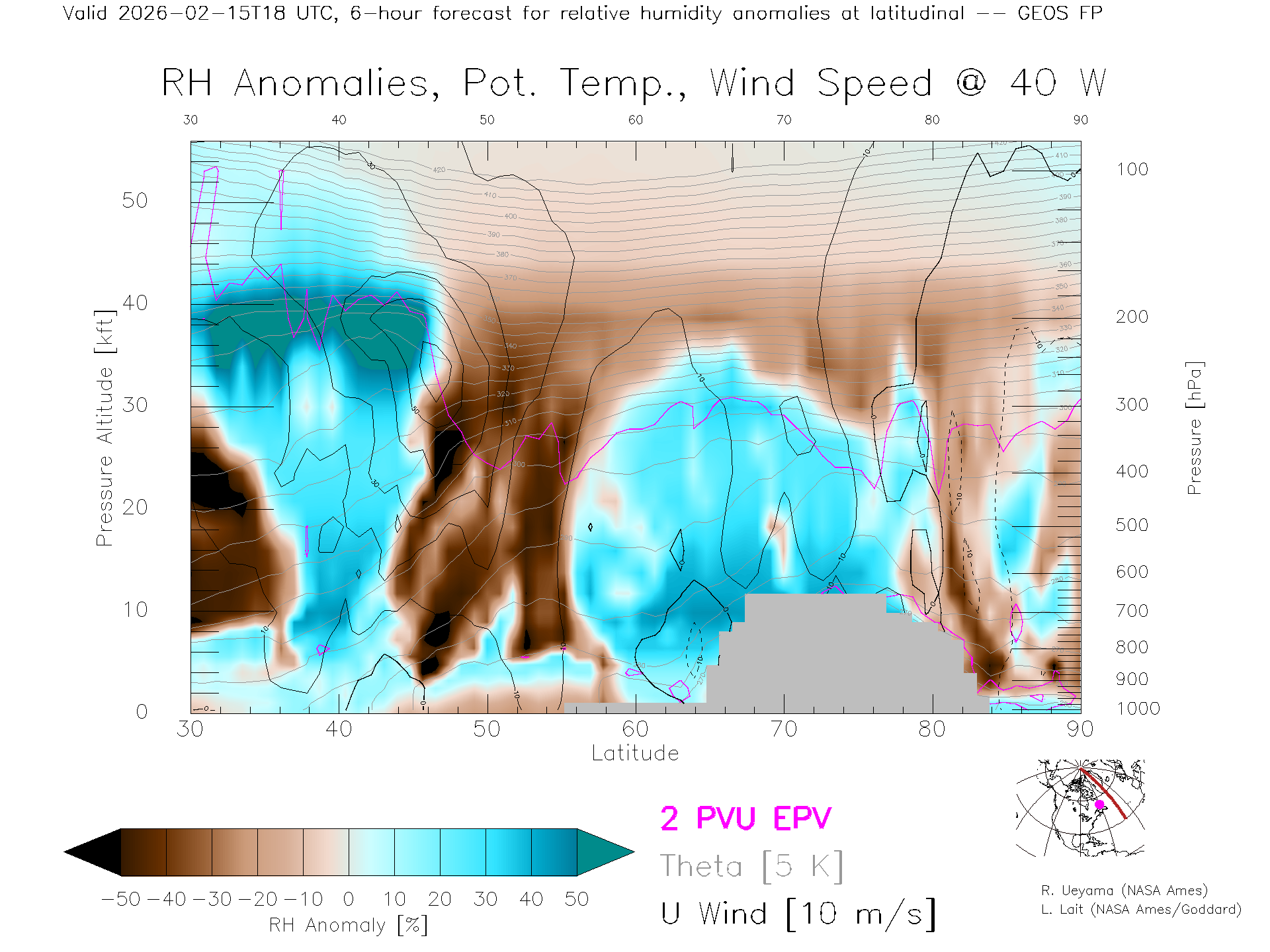 GEOS Forecast Rel. Hum. X-Section (40 W)