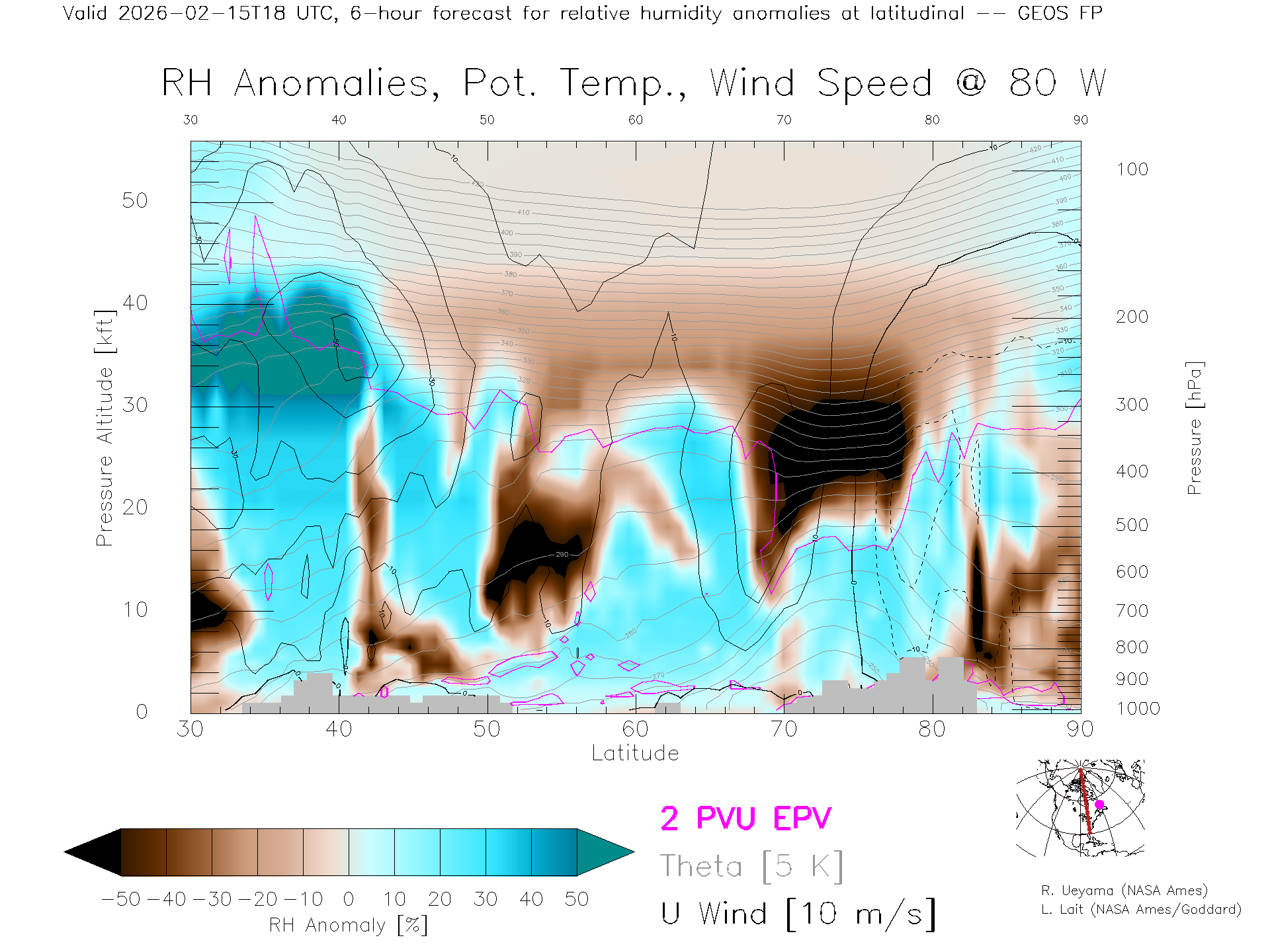 GEOS Forecast Rel. Hum. X-Section (80 W)