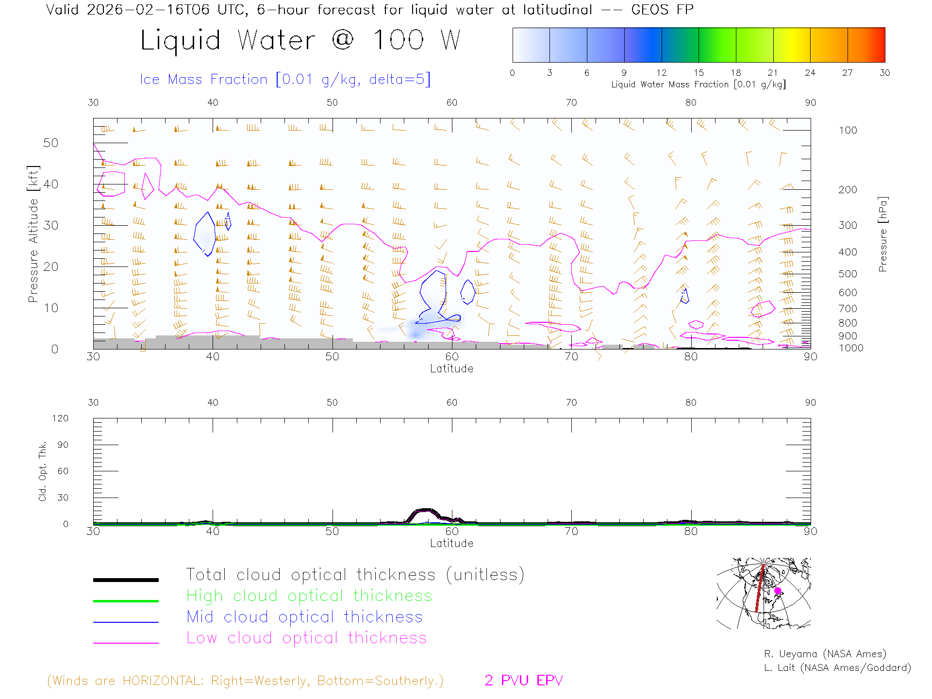 GEOS Forecast Cloud Water Content X-Section (100 W)