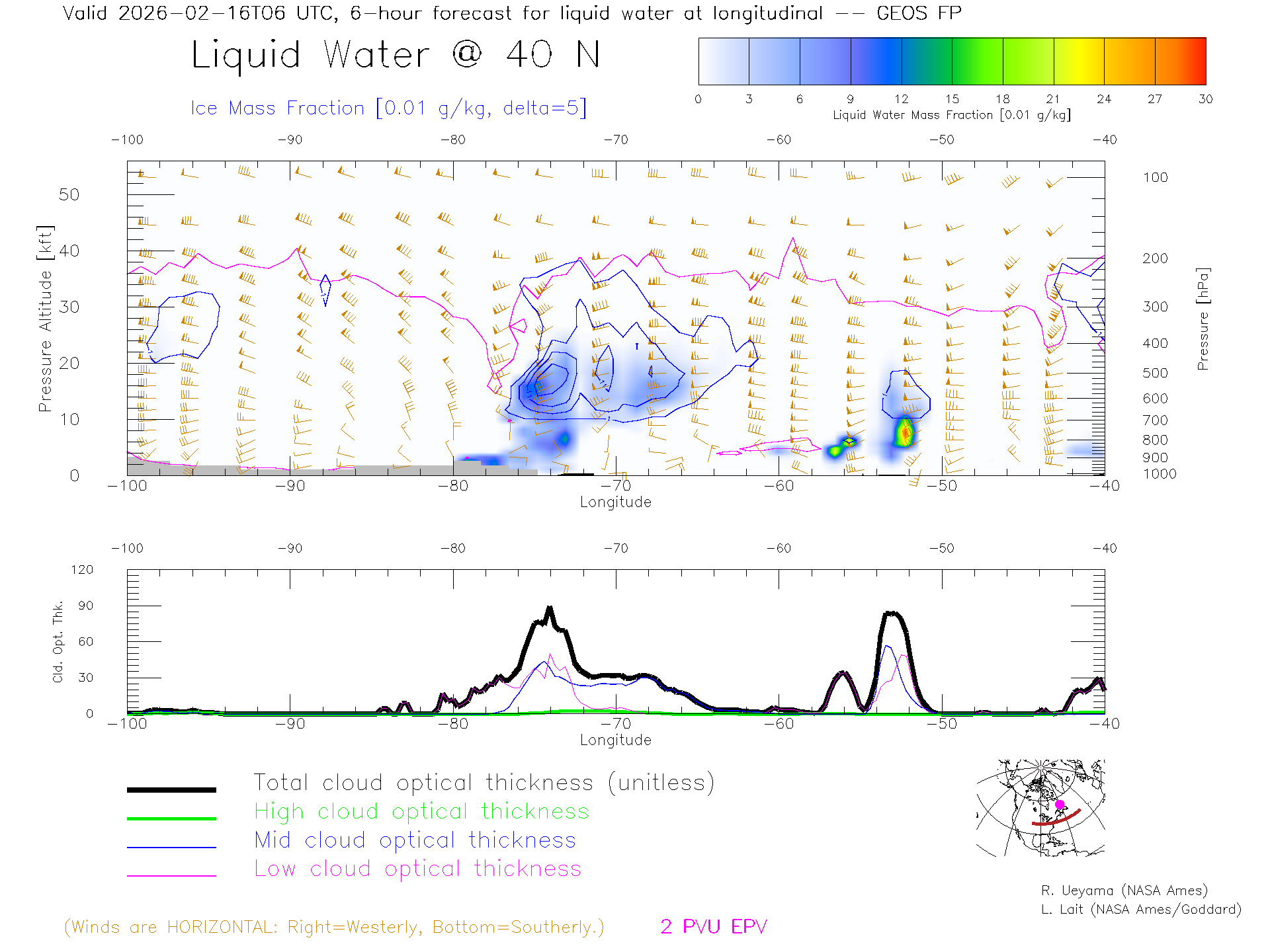 GEOS Forecast Cloud Water Content X-Section (40 N)