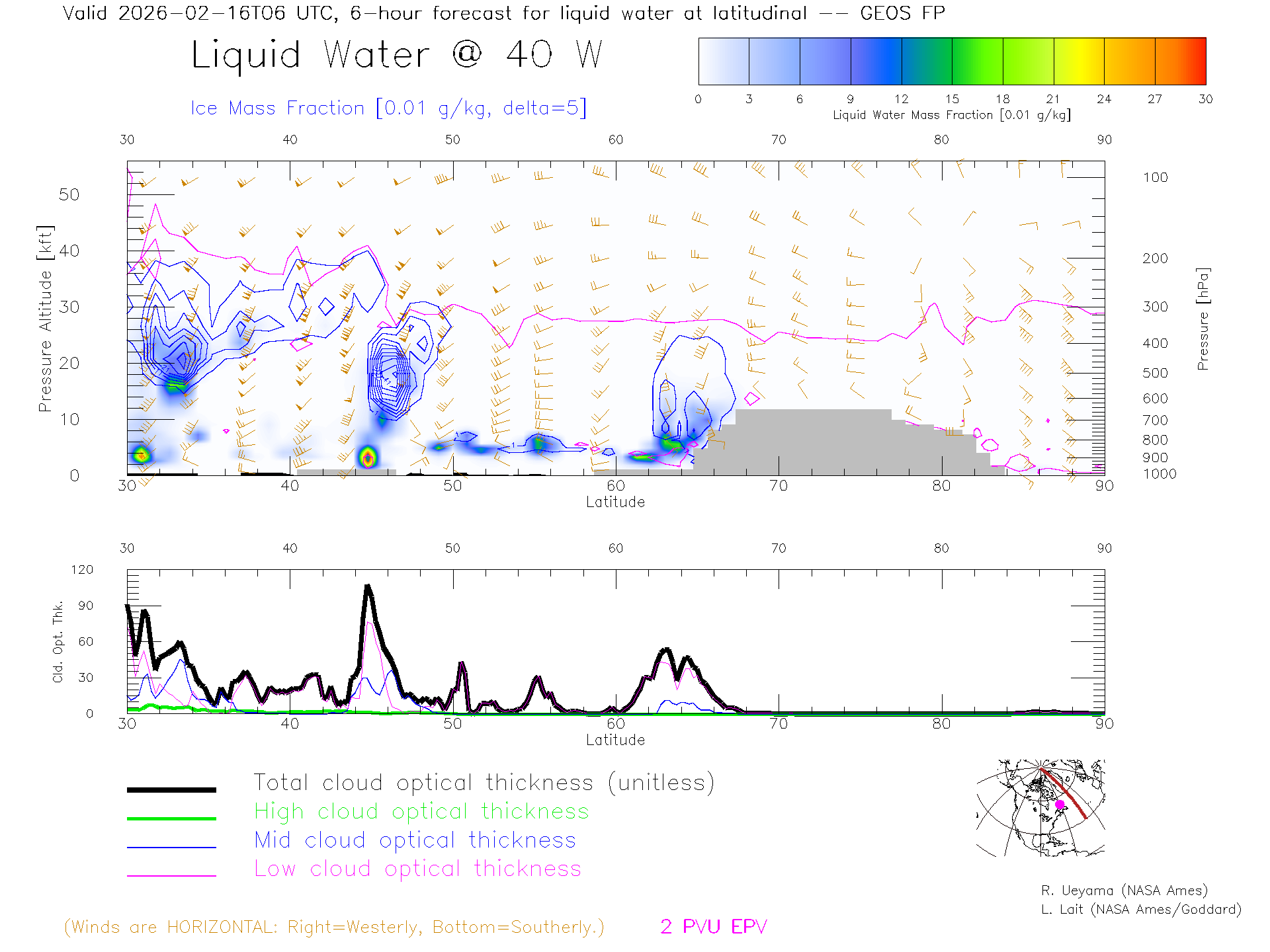 GEOS Forecast Cloud Water Content X-Section (40 W)