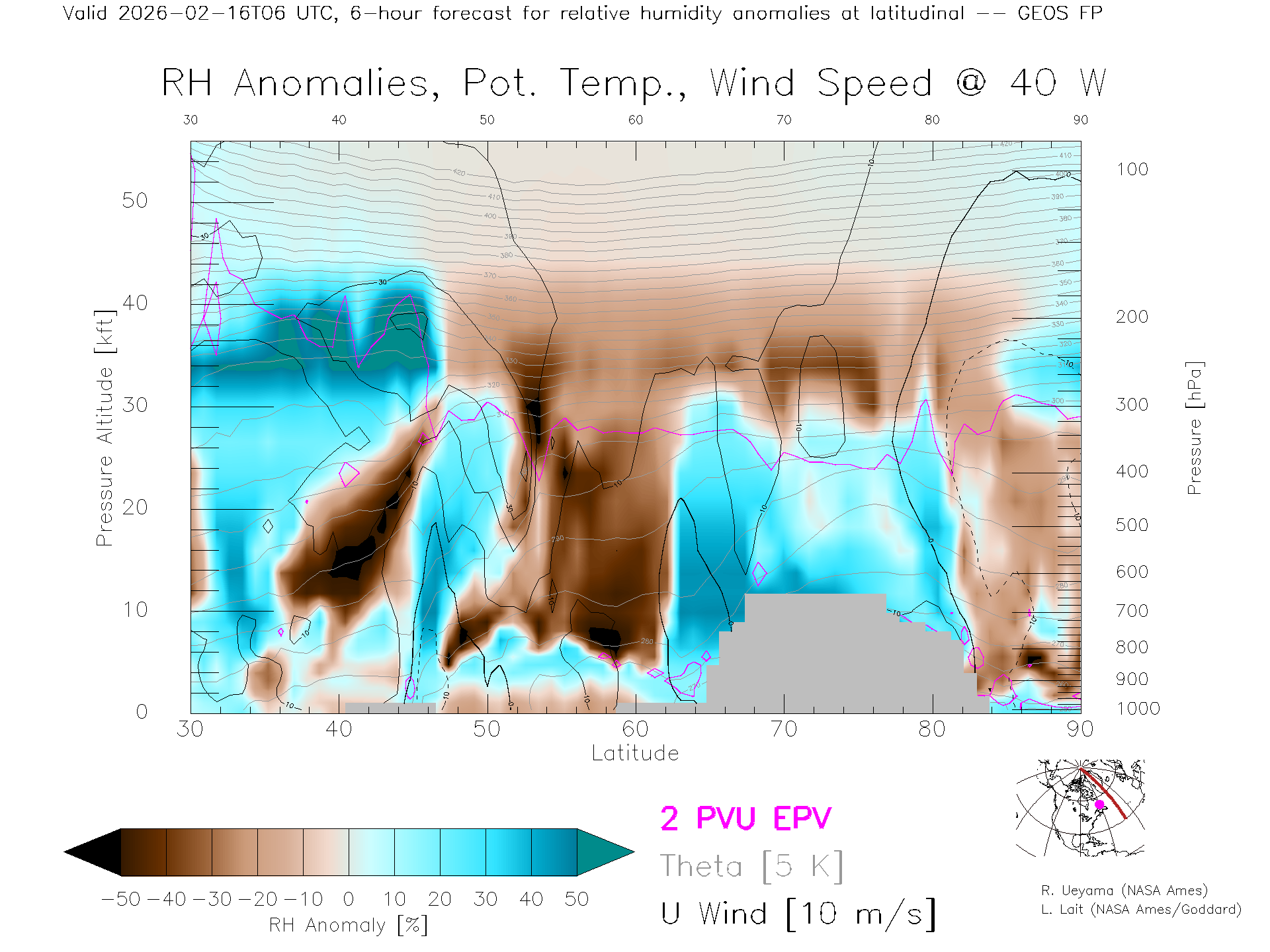 GEOS Forecast Rel. Hum. X-Section (40 W)