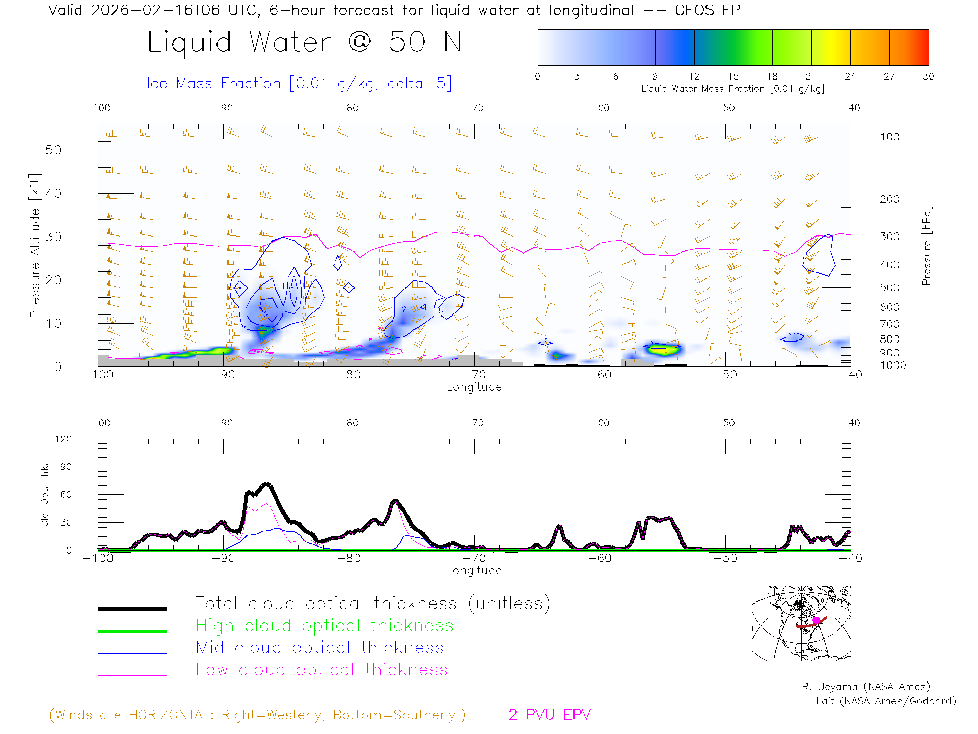 GEOS Forecast Cloud Water Content X-Section (50 N)