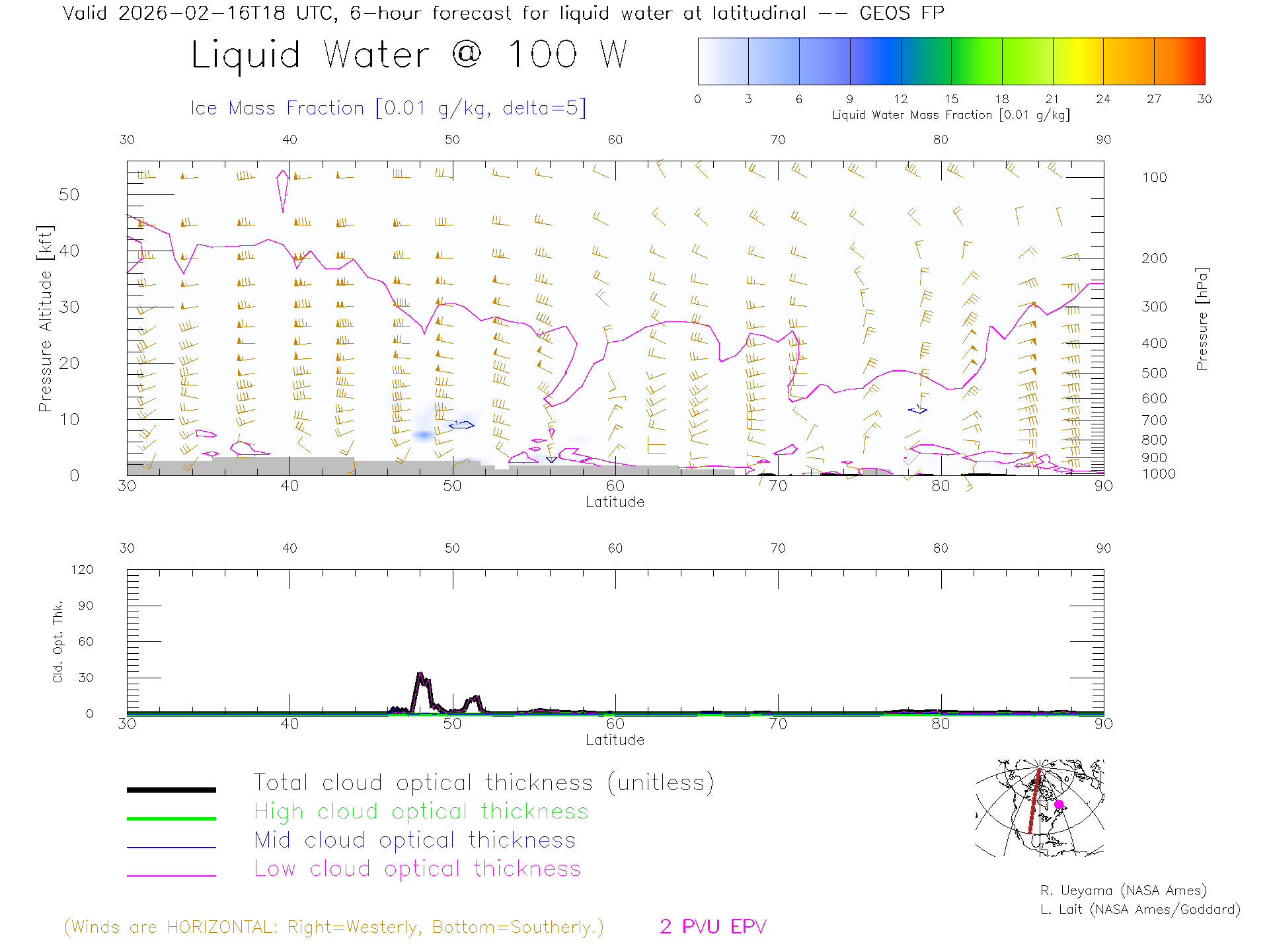 GEOS Forecast Cloud Water Content X-Section (100 W)