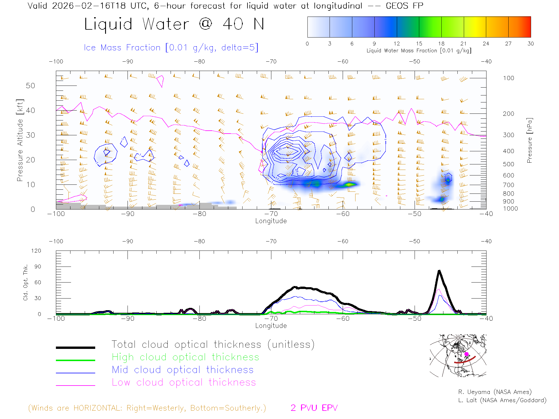 GEOS Forecast Cloud Water Content X-Section (40 N)