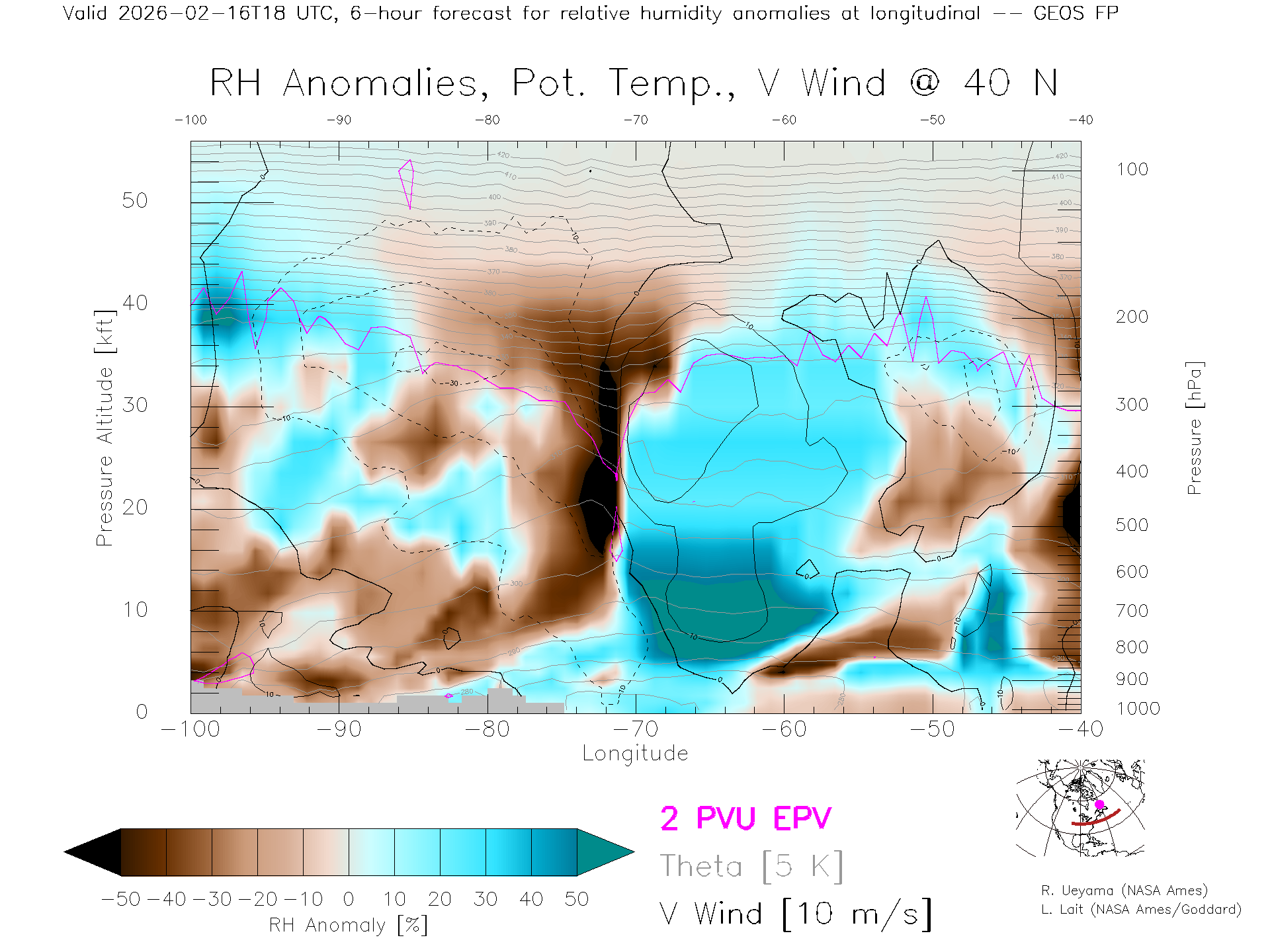 GEOS Forecast Rel. Hum. X-Section (40 N)