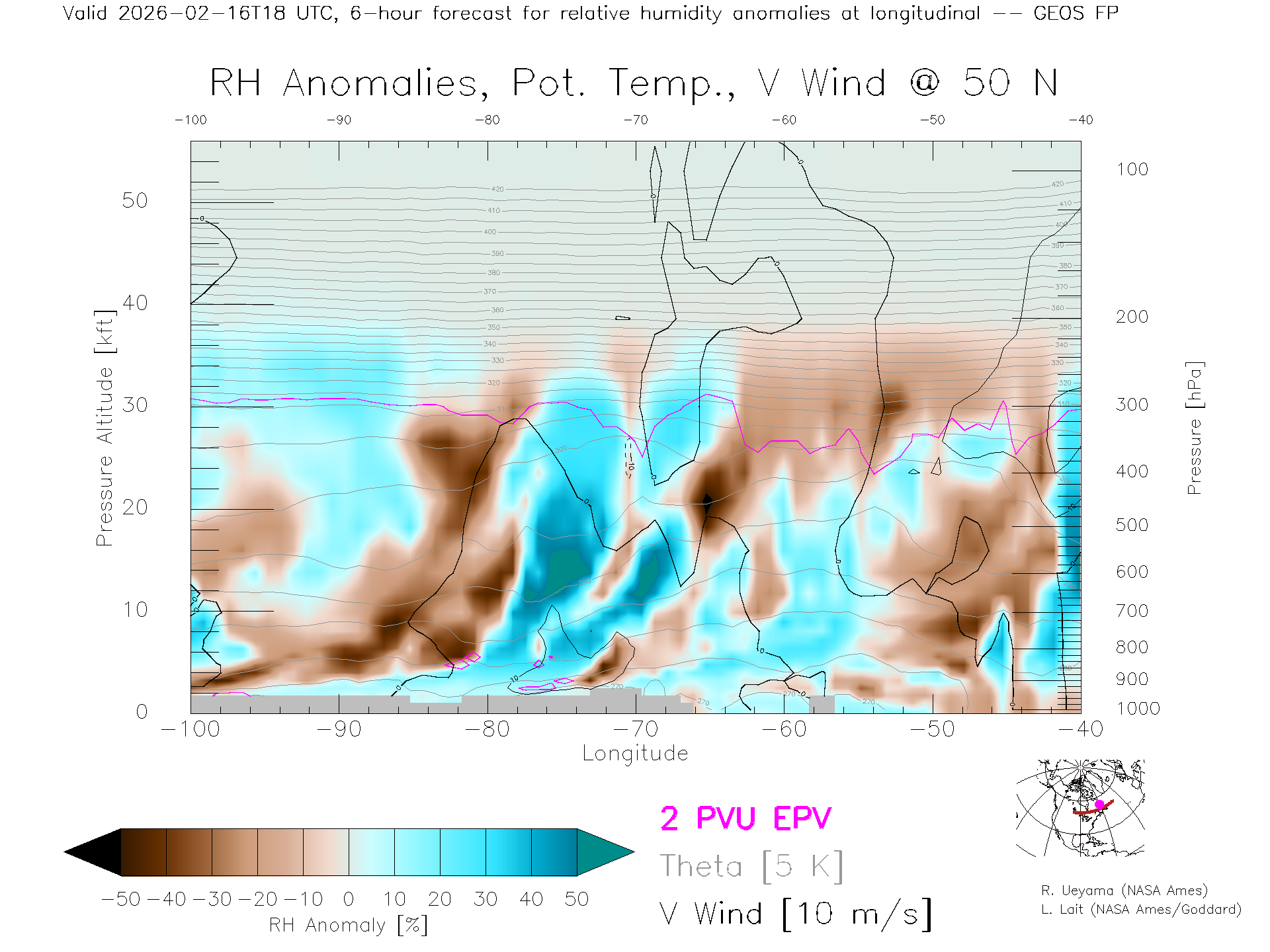 GEOS Forecast Rel. Hum. X-Section (50 N)