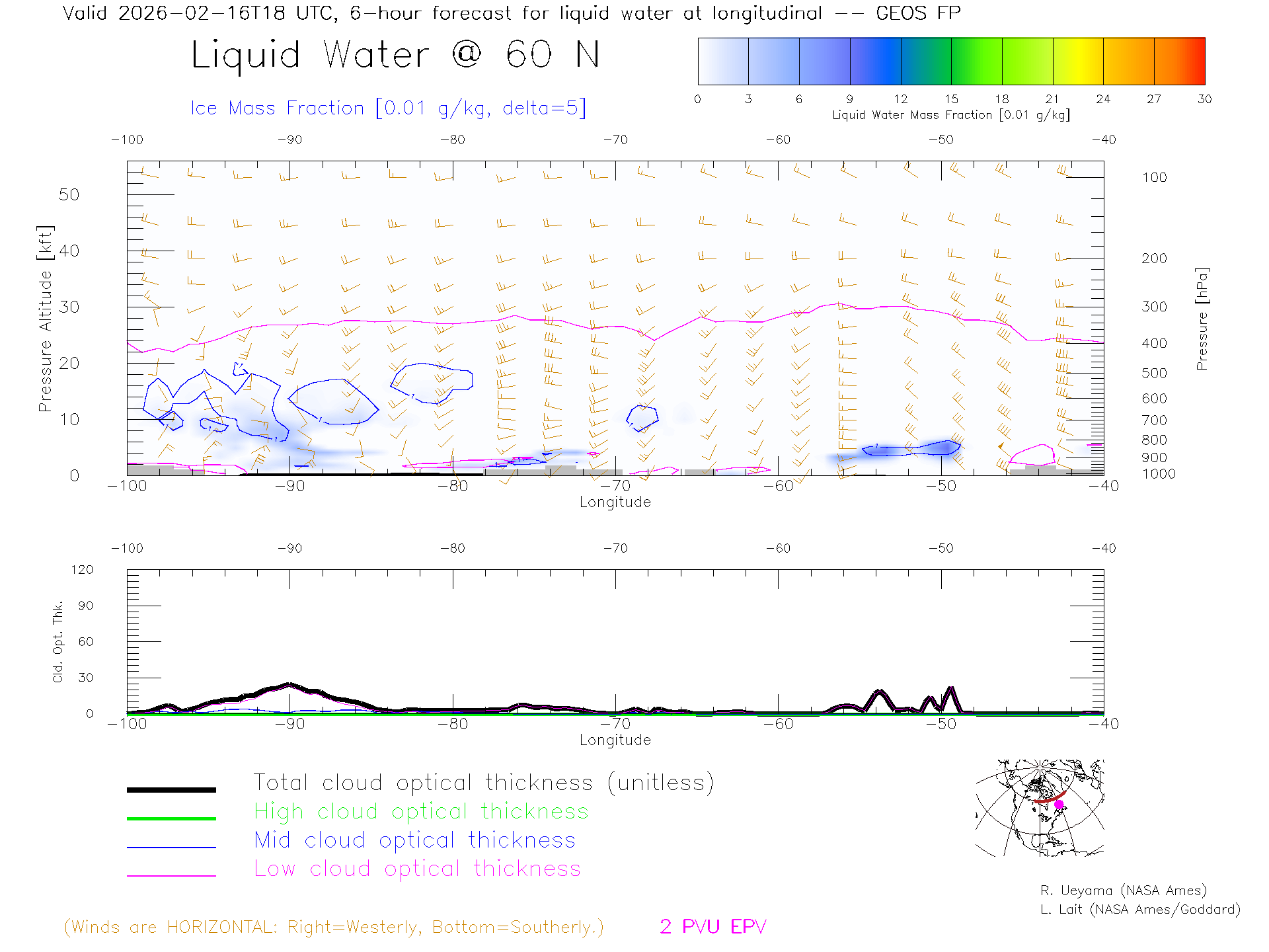 GEOS Forecast Cloud Water Content X-Section (60 N)