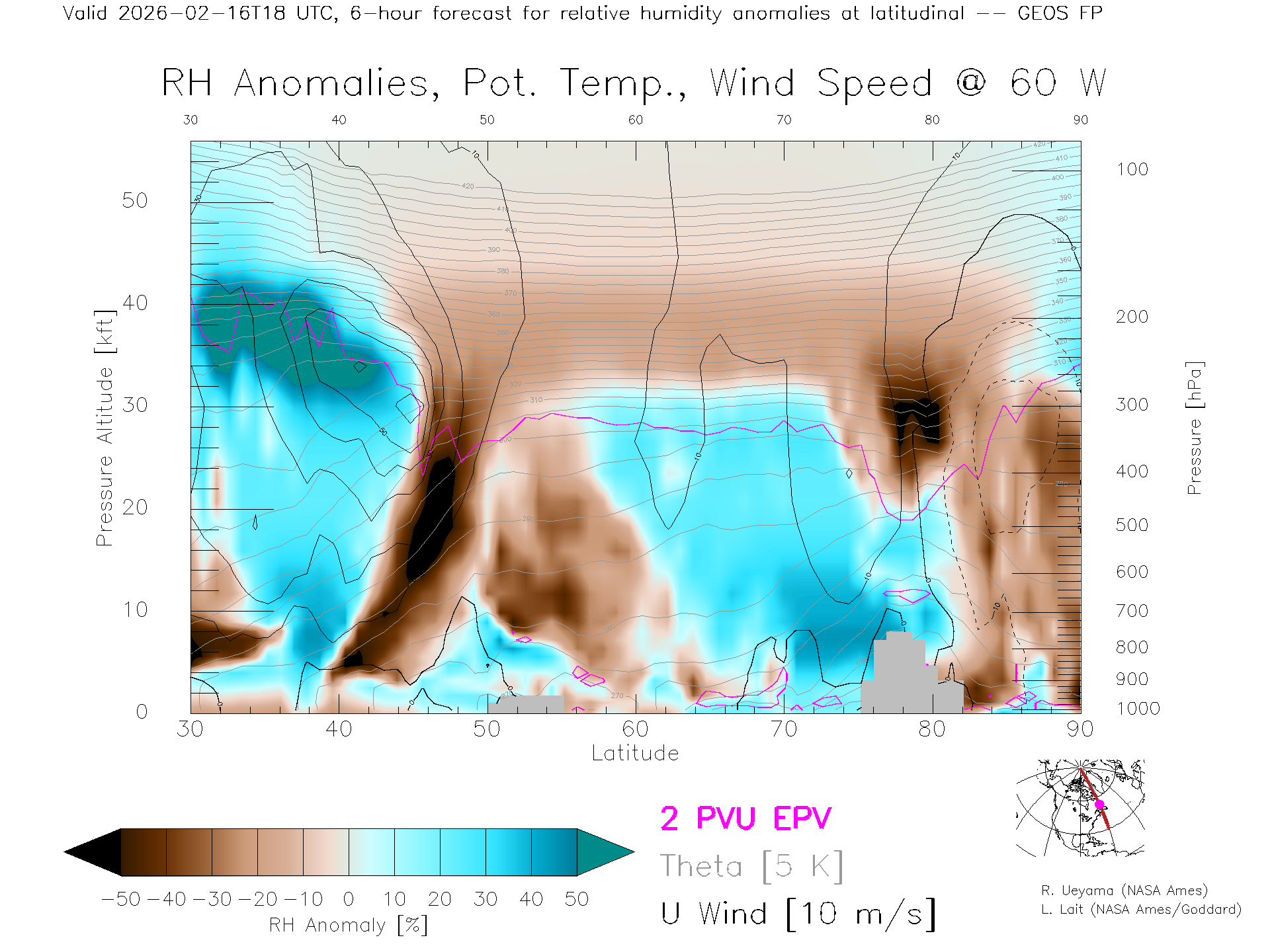GEOS Forecast Rel. Hum. X-Section (60 W)