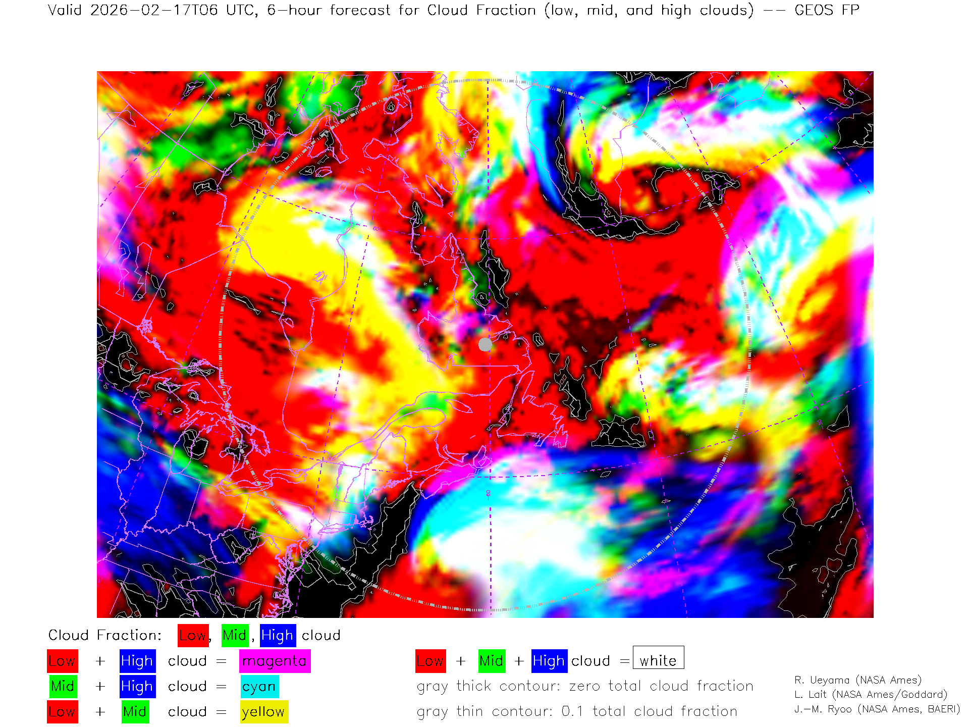 GEOS Forecast Low-, Mid- and High-level Cloud Fraction
