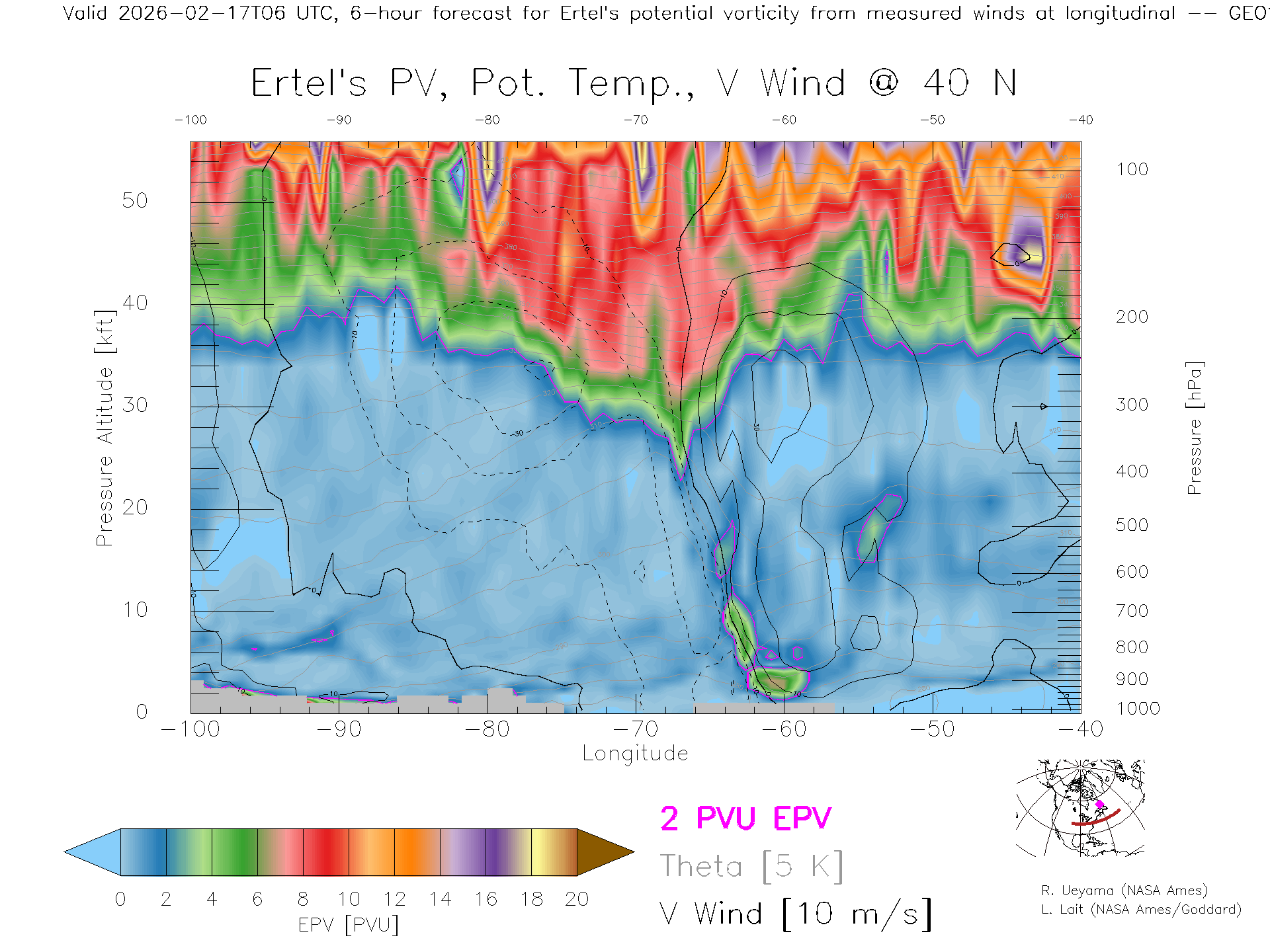 GEOS Forecast PV X-Section (40 N)