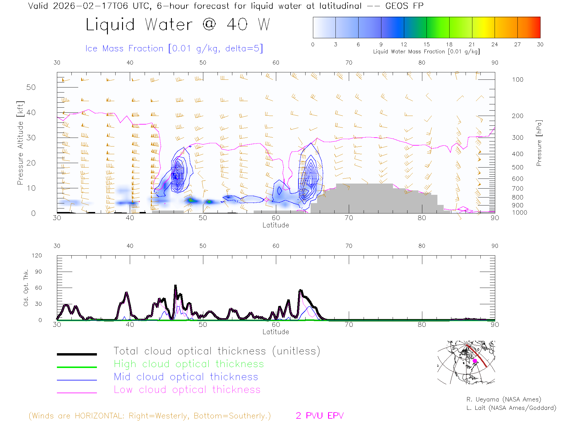 GEOS Forecast Cloud Water Content X-Section (40 W)