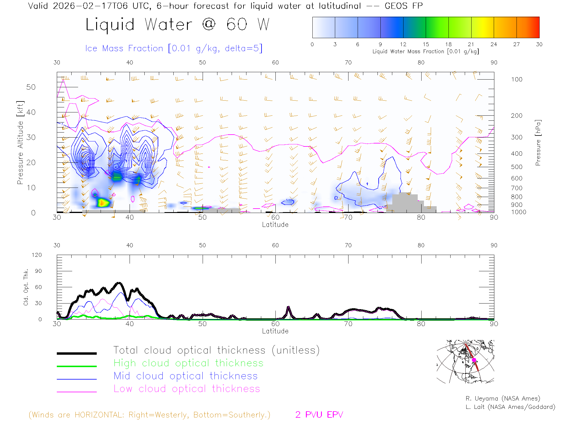 GEOS Forecast Cloud Water Content X-Section (60 W)