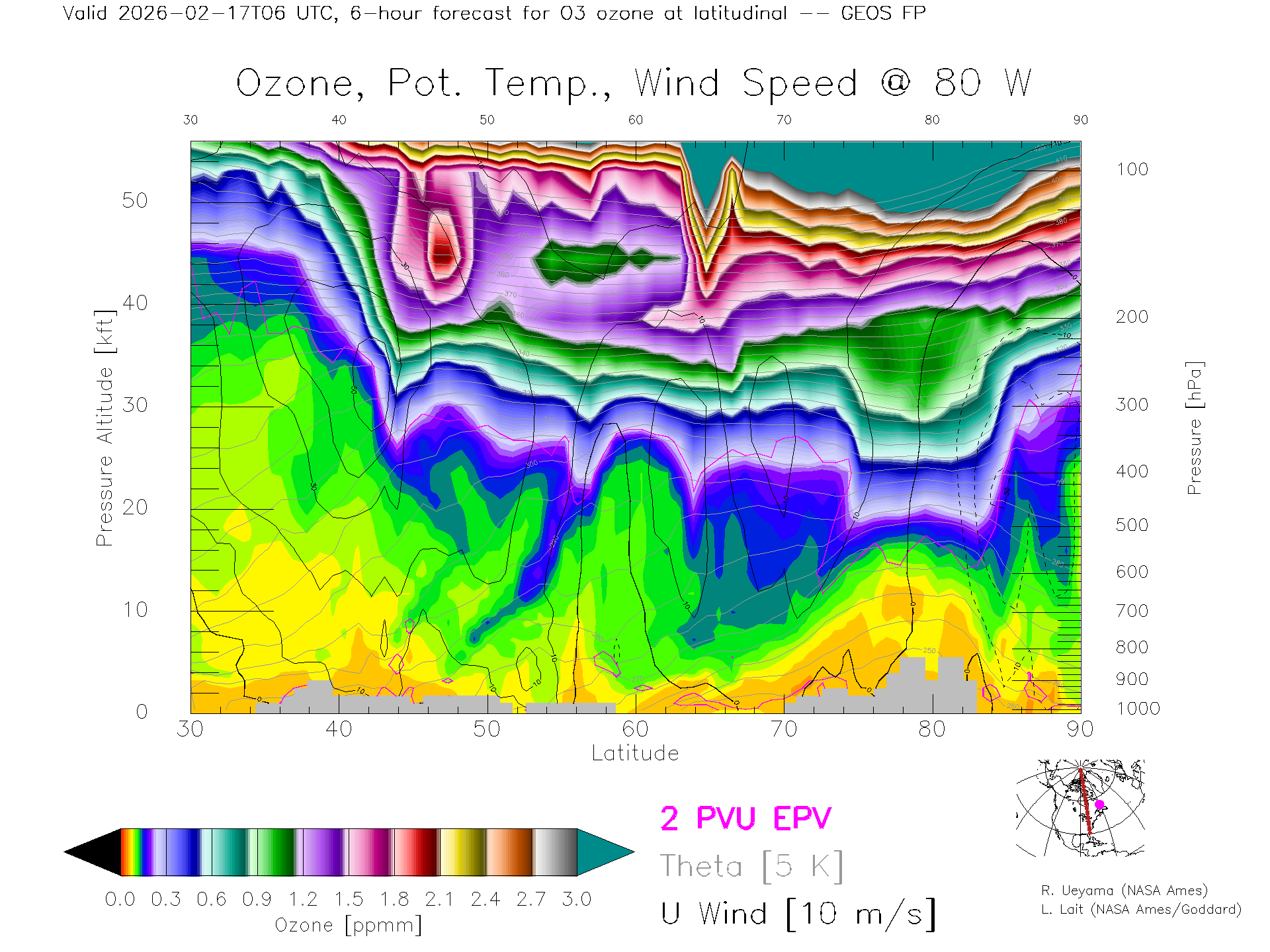GEOS Forecast Ozone X-Section (80 W)