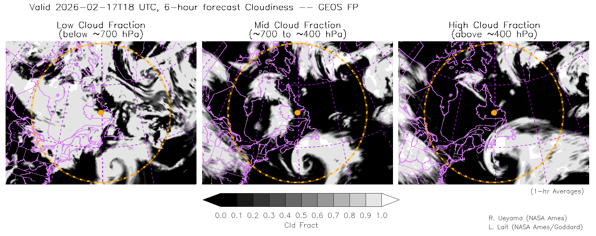 GEOS Forecast Cloud Fraction (High, Mid, Low)