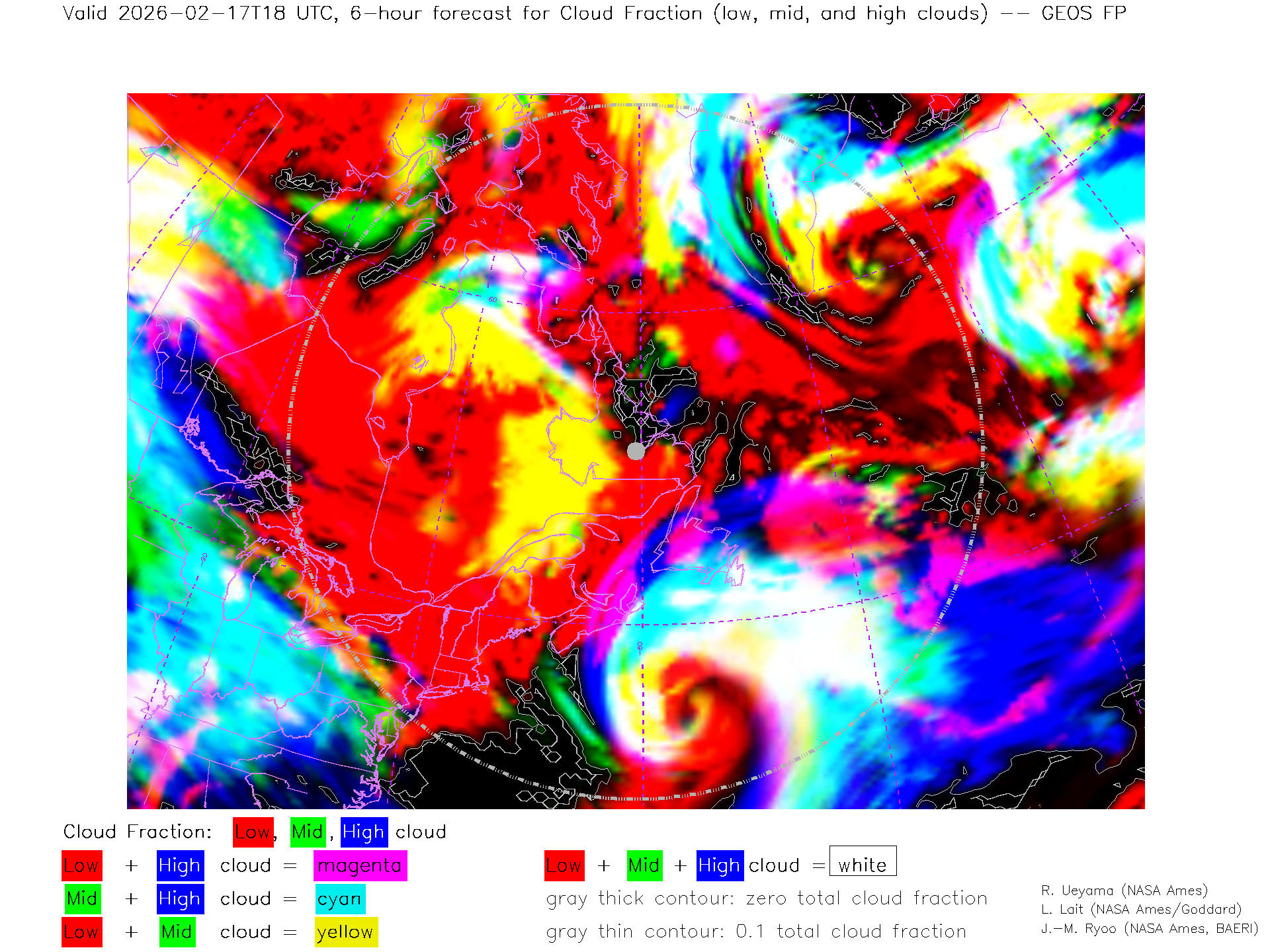 GEOS Forecast Low-, Mid- and High-level Cloud Fraction