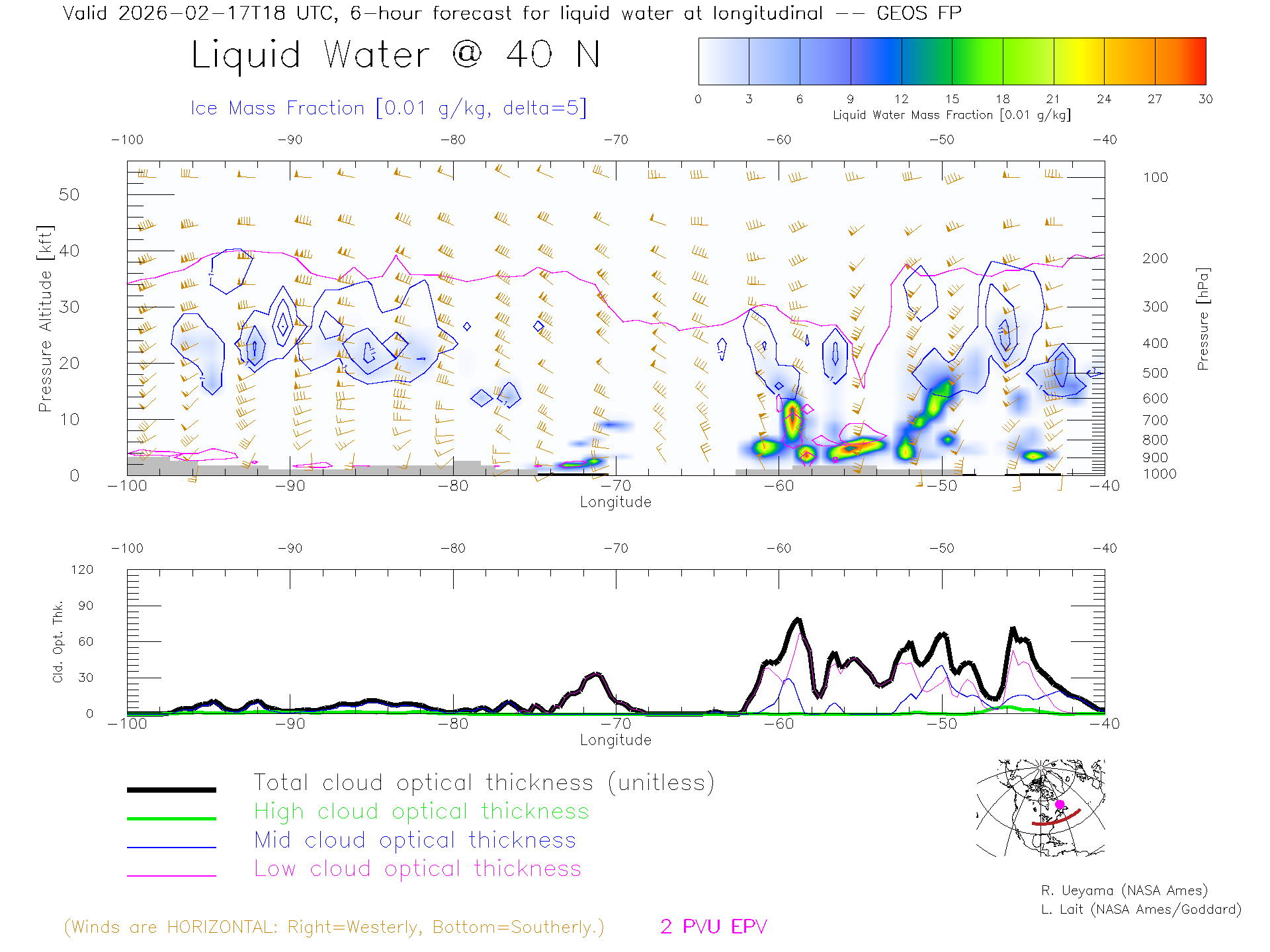 GEOS Forecast Cloud Water Content X-Section (40 N)